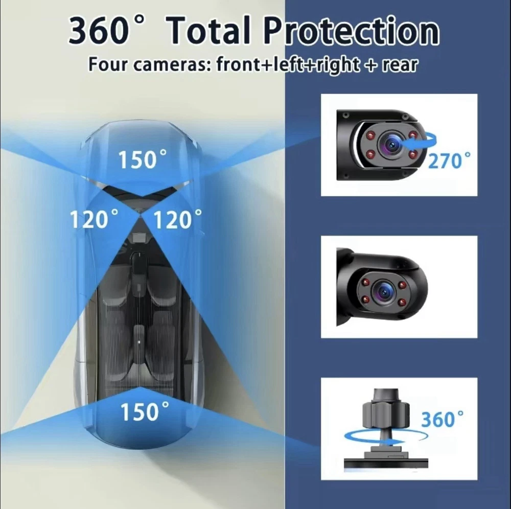 Dash Cam 4 Channel 360° Front Rear Inside DashCam, FHD 1080P Car DVR Camera 64GB