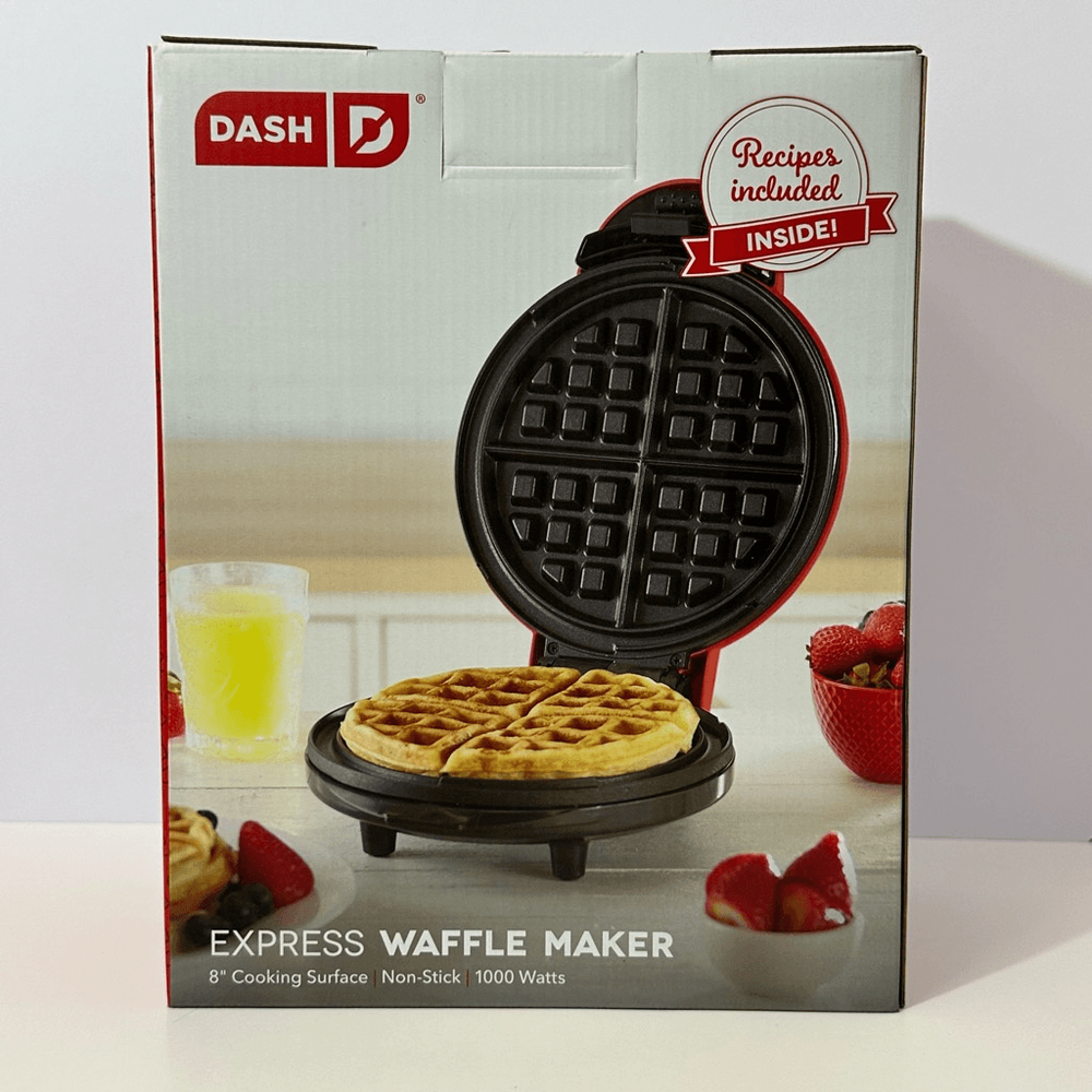Waffle maker heats quickly and evenly. It is non-stick. Cooks at 1000 watts. Easy cleanup. Includes recipes. Make waffles, Chaffles, Falafels. New, unopened. Still in the box. 8” cooking surface Non-stick Round waffles #1529 Breakfast, cook, food, lunch, brunch