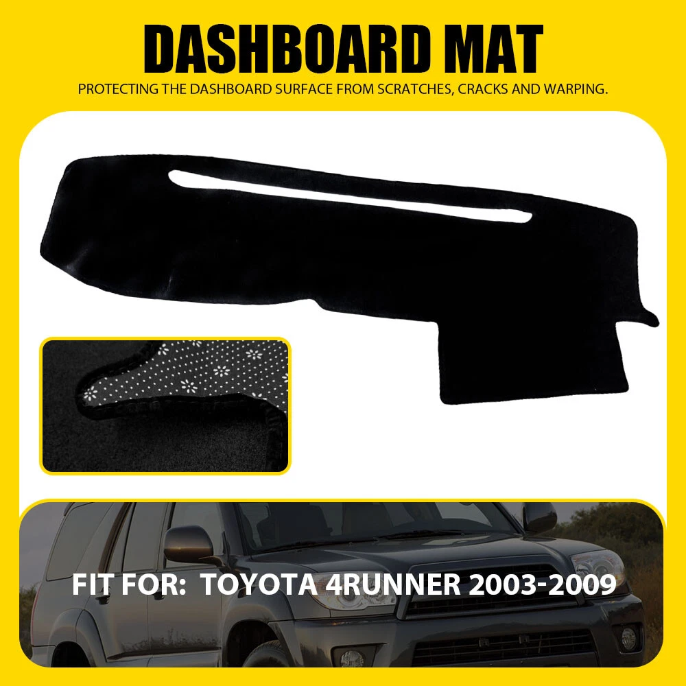 Material: Polyester,anti-skid silica gel Items Included: Tape Manufacturer Warranty: 3 Years Type: Dash Cover Color: Black Fitment Type: Direct Replacement Non-Domestic Product: No Performance Part: No Features: Easy Installation Universal Fitment: No Size: As Photo Show gtin13: Does not apply Superseded Part Number: Car Dashmat Carpet Country/Region of Manufacture: China OE/OEM Part Number: Car Dashboard Mat Pad Return Policy: 60 Days Free Return Modified Item: No Interchange Part Number: Dashmat Brand: AUXITO Manufacturer Part Number: Fit For Toyota 4Runner 2003-2009 Custom Bundle: No Finish: Matte UPC: Does not apply Vintage Part: No Number of Pieces: 1 Package Include: Dashboard Cover Mat *1
