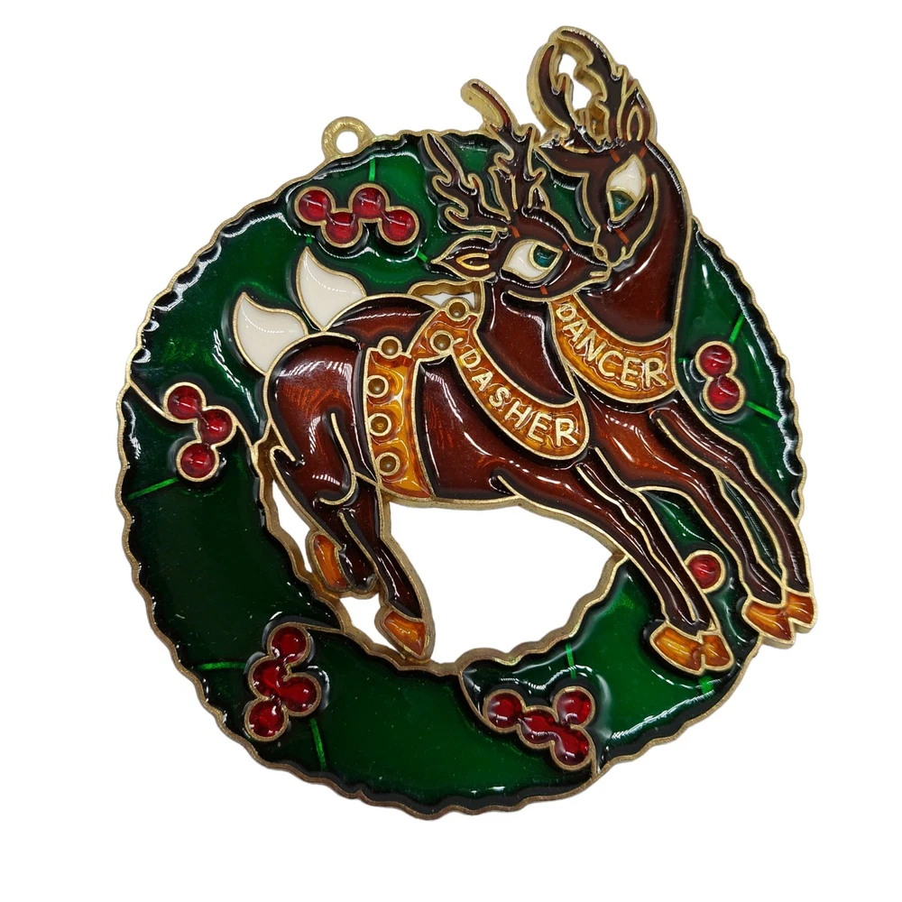 Dasher Dancer Reindeer Stained Glass Christmas Sun catchers Plastic