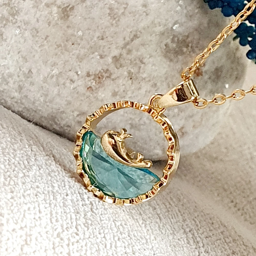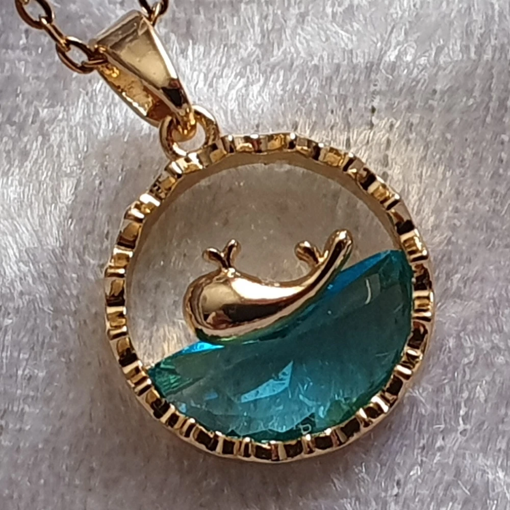 Fantastic High Quality Gorgeous Blue Lake CZ crystal with a cute dolphin in Gold tone Pendant Size : Approx 2.5cm Chain :18 inches Totally unique Crazy promotional price for limited period!