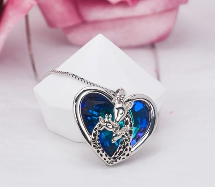 GIFT BOXED Includes a Quote card, Necklace, Velvet Gift pouch and a polishing cloth. Fantastic High Quality , Sparkling Blue crystal with green hues. Pendant Size : Approx 2cm with 'Love you ' inscribed Chain :18 inches Totally unique Crazy promotional price for limited period!