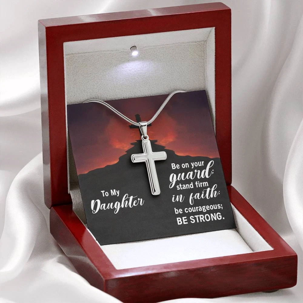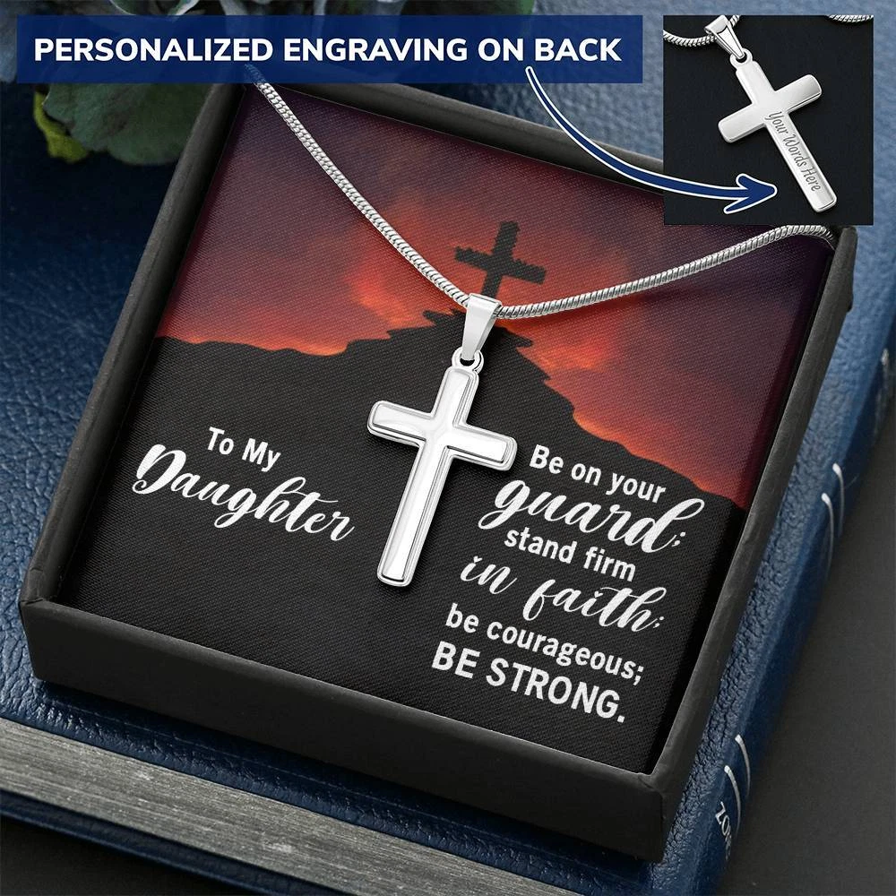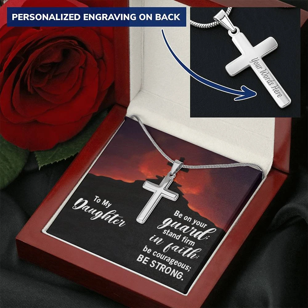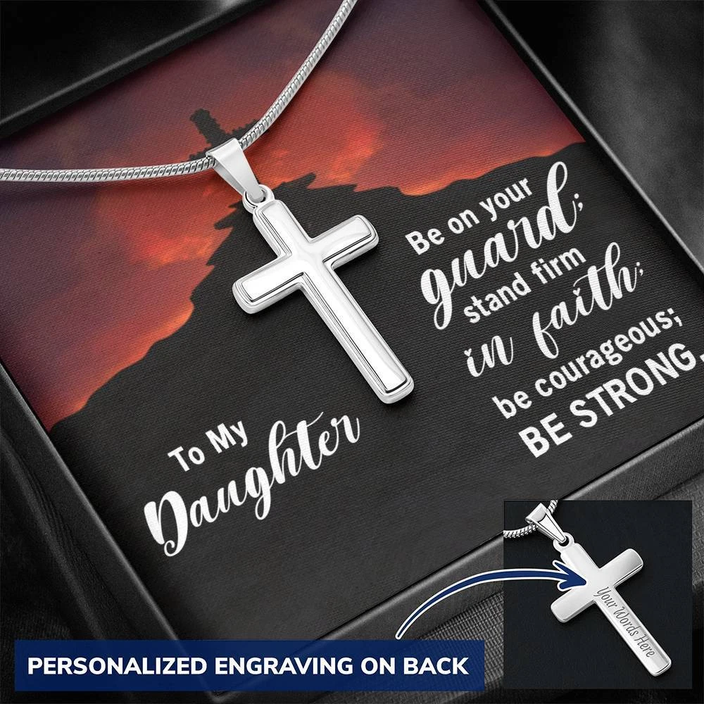 Wear your faith proudly with this Personalized Cross Necklace . Perfect for special occasions or everyday wear, our Personalized Cross Necklace is a wonderful gift idea for you or your loved one. The gorgeous pendant can be further personalized on the back with a name, date, or short message, up to 20 characters. This is a gift that will surely be treasured for years to come! Sizing is appropriate for all ages, and tasteful for both men and women. Crafted in high polished stainless steel, this piece will resist tarnishing and is hypoallergenic for sensitive skin. Includes a luxury adjustable snake chain (18" - 22") and attaches with an easy to use lobster clasp. Cross Necklace Details • Polished stainless steel • Pendant height: 1.3" (33.5mm) • Pendant width: 0.8" (19mm) • Adjustable snake chain (18" - 22") • Lobster clasp closure