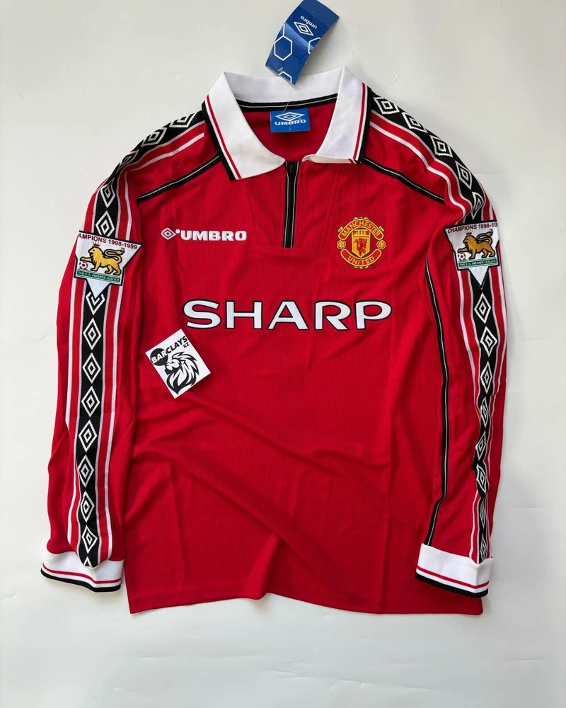 David Beckham Manchester United 1998 Home Red Long Sleeve Soccer Jersey