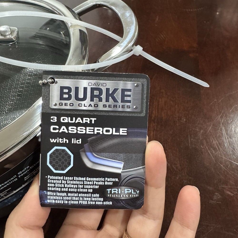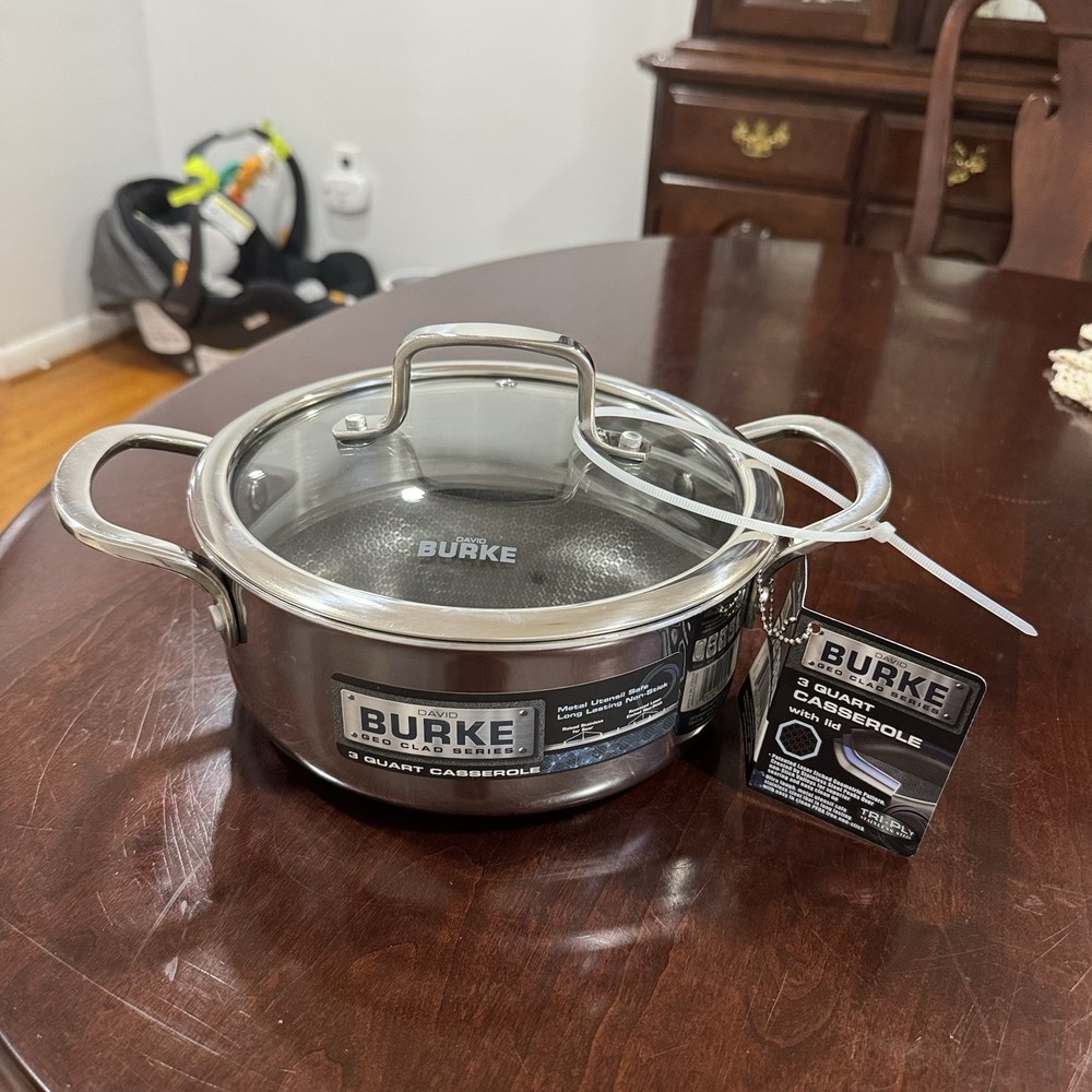 David Burke Geo Clad 3-qt 8" Heavy Stainless Casserole New