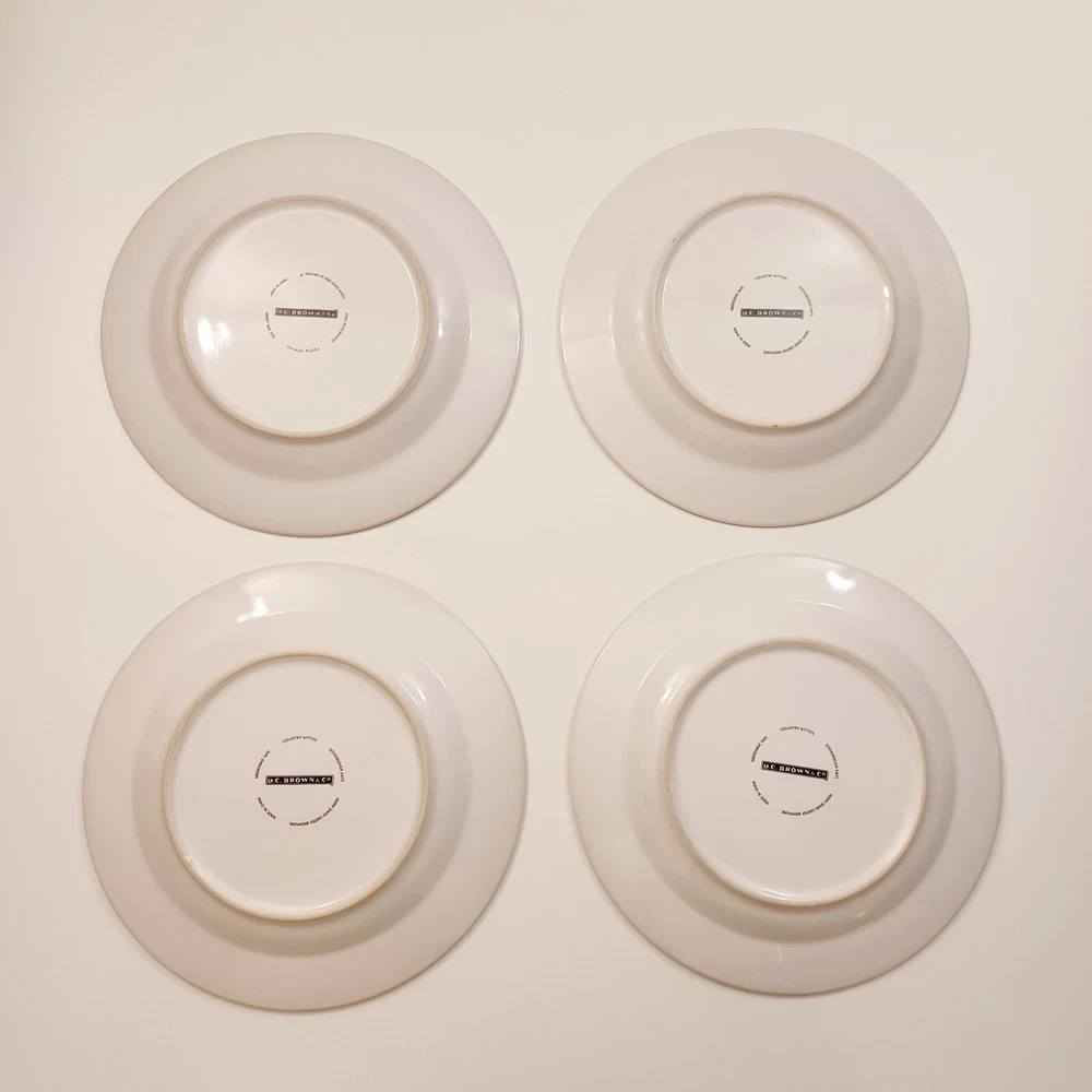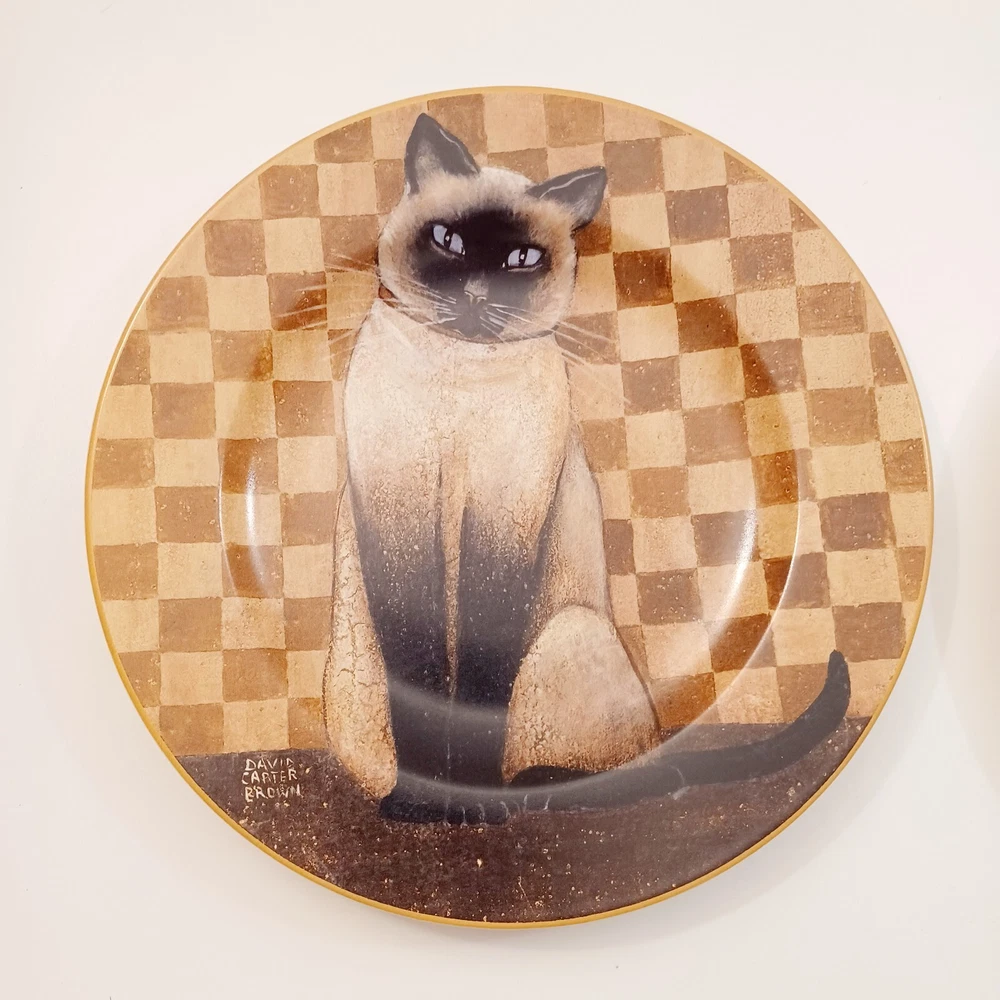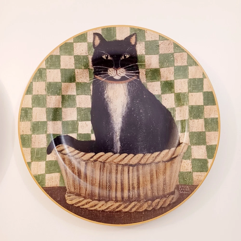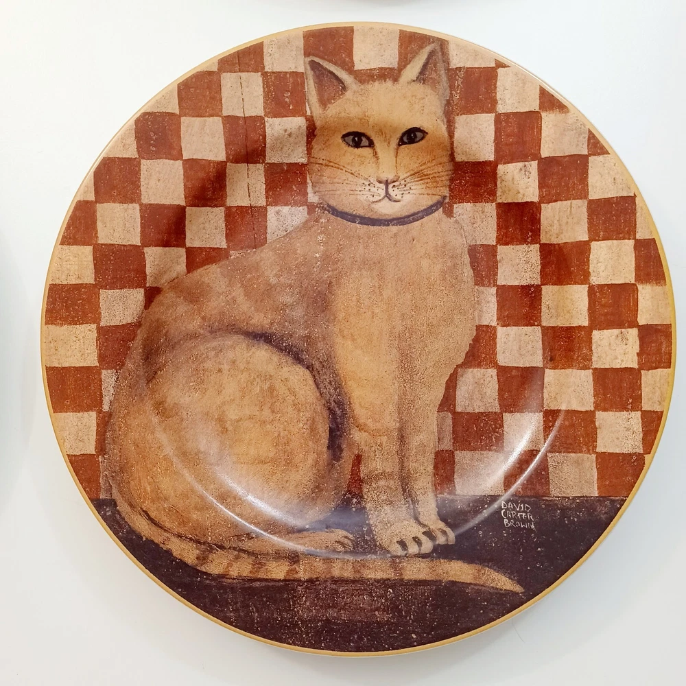 David Carter Brown Country Kitties Salad Plates Dessert Plates Cats Set of 4 - Signed 2004 D.C. Brown & Co. Microwave & Dishwasher Safe Very Good Condition See pics for condition