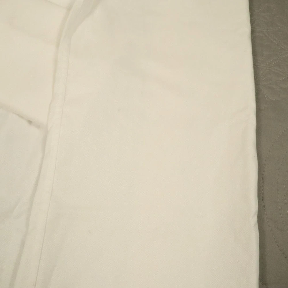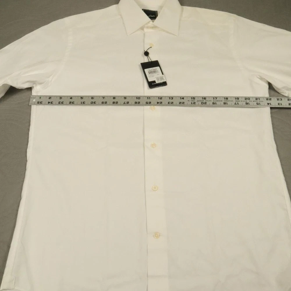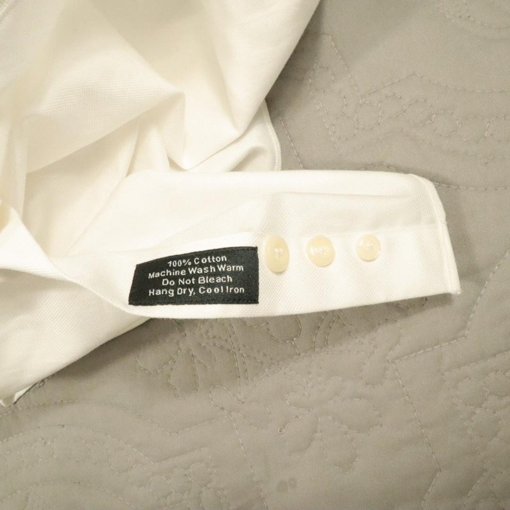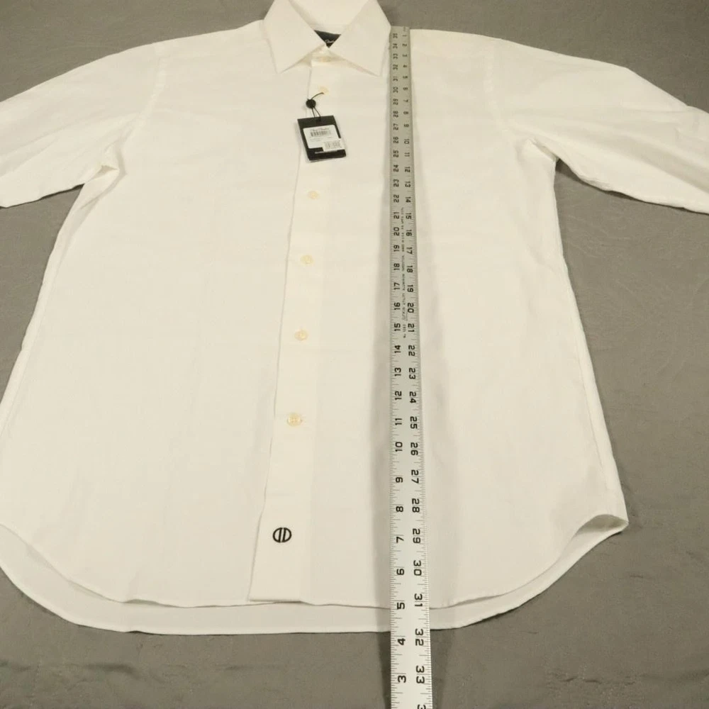 Brand: David Donahue Style: Mens long sleeve dress shirt with button front closure, point collar, and barrel cuffs. Color: Solid white. Size on tag: Mens 15.5 neck, 34/35 sleeve. Material: 100% cotton. Some dirt around shoulders and collar, also some at crease of end of sleeve. PLease see all pictures. May wash out.