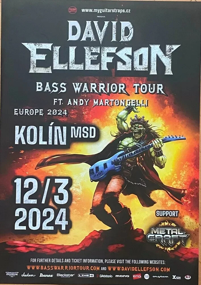 David Ellefson Concert Poster Czech Republic 2024 2025 17" x 25" Megadeth