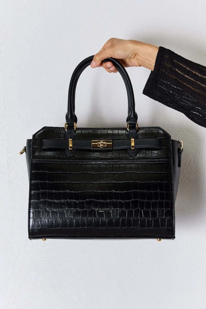 JW PEI Mini Flap Shoulder Bag in Black Croc Embossed Vegan Leather with Magnetic Lock – Stylish, Compact, and Eco-Friendly Design