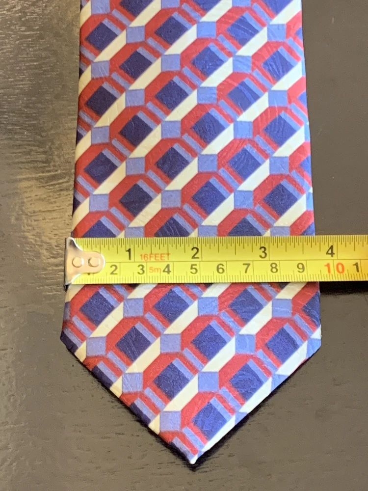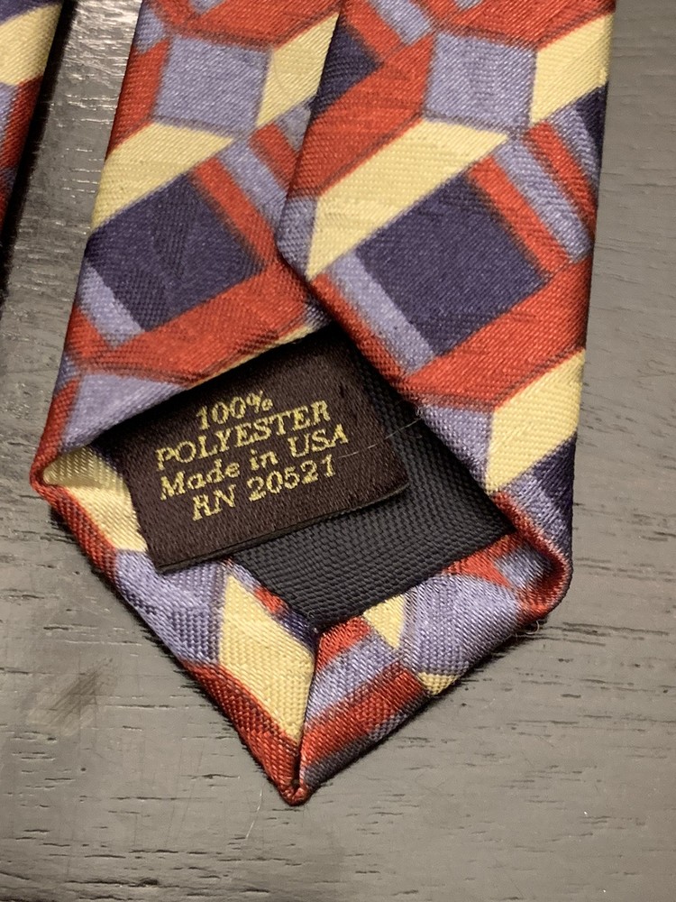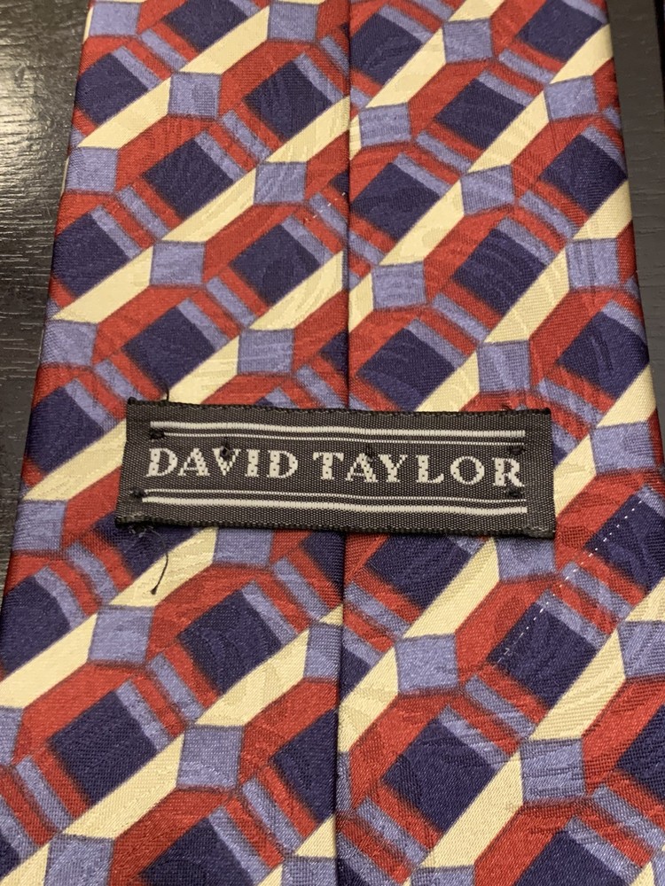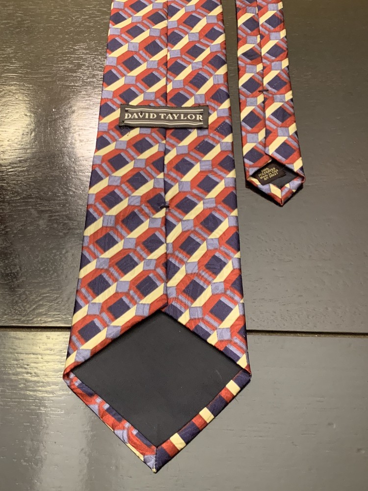 **Approx. 55.5” long and 3.75” wide** Elevate your formal attire with the David Taylor Necktie, a classic accessory that makes a bold statement. The geometric pattern in rich maroon, navy blue, and gold hues offers a versatile palette that complements a variety of shirts and suits. Made in the United States, this tie is crafted from durable polyester, ensuring both comfort and longevity. With a standard item length of 55.5 inches and a classic width, this tie is designed to fit most neck sizes and is tied for a neat, adjustable finish. Ideal for the modern gentleman's wardrobe, it's a piece that effortlessly combines style with practicality, making it a smart choice for any occasion that calls for a touch of elegance.