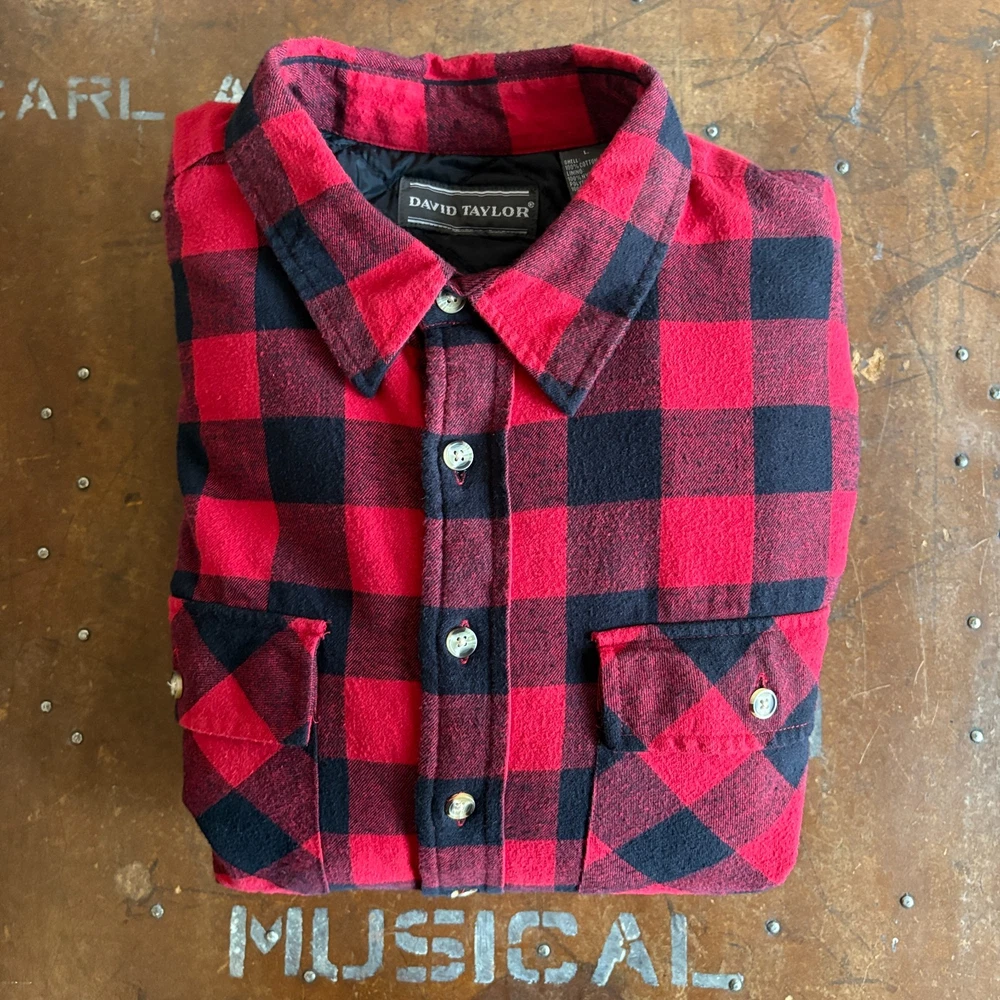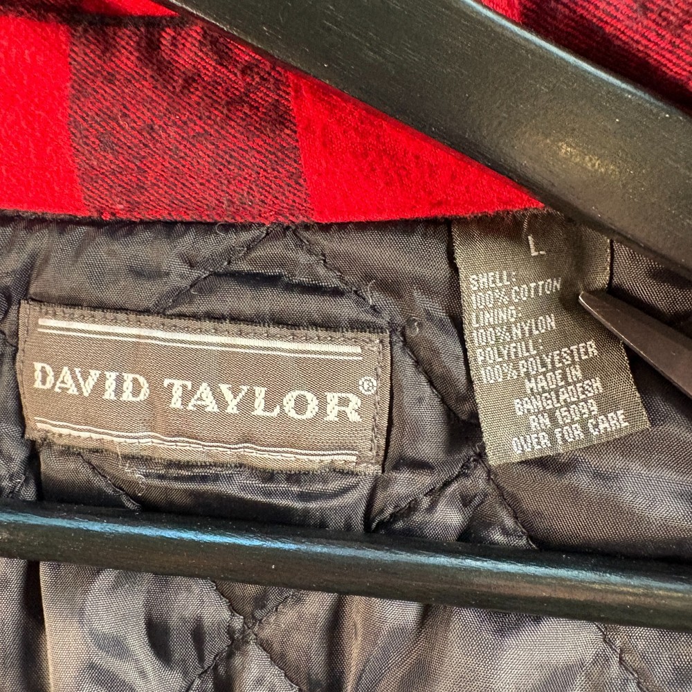 The David Taylor Flannel Shirt Jacket in size Large is a versatile and stylish addition to any man's wardrobe. This red plaid jacket features a quilt-lined nylon lining for added warmth, making it perfect for outdoor activities in the winter, fall, or spring. The relaxed fit and button closure give it a comfortable and casual look, while the polyester insulation ensures you stay cozy. Whether you're walking, hunting, or hiking, this overcoat is sure to keep you stylish and protected from the elements. Measurements: Pit to Pit - 26.25" Shoulder to Hem - 30.5" Please compare the measurements to your favorite garments to ensure a good fit. All items have been cleaned. Smoke free & pet free home. Same business day handling on orders before 12:00pm (noon) EST. New items listed daily.