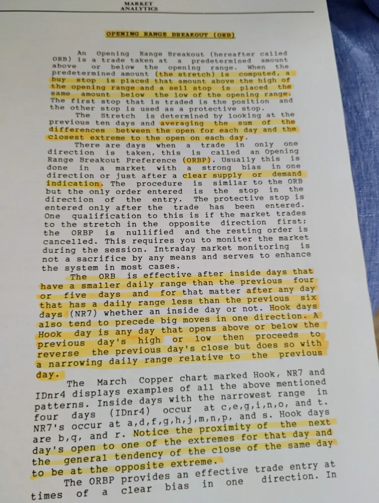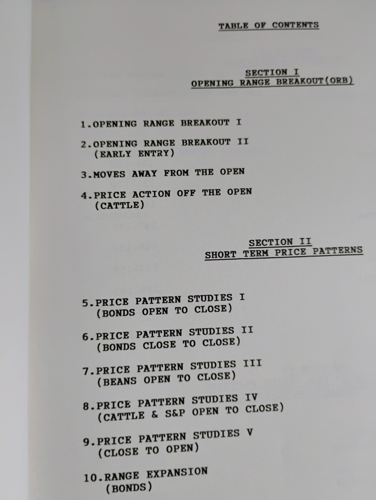 IF YOU DONOT BUY MY BOOK, BUY SOMEONE ELSES. I HAVE BEEN TRADING SINCE THE EARLY 90'S . THIS RANKS IN THE TOP TWO TRADING DISCLOSURE MANUALS IN THE WORLD. THERE ARE A LOT OF NOTES IN THIS BOOK SO I HAVE RANKED IT BARELY (A). I AM 77 NOW AND HAVE MY SYSTEMS COMPLETED BUT THIS BOOK REVEALED THE SECRETS. DONT COMPLAINE WHEN YOU GET THE BOOK. IT IS A MESS OF NOTES AND ANALYSIS AND DETACHED PAGES. JUST READ IT. RESPECTFULLY MICHAEL PUTNEY AMES PAST PRESIDENT AMES OIL CORPORATION OF TEXAS Toby Crabel’s Day Trading With Short Term Price Patterns & Opening Range Breakout is a landmark work in quantitative trading literature. It’s revered for its rigorous, data-driven approach to short-term price behavior and remains one of the most sought-after texts among serious traders. 🔍 Core Focus • Opening Range Breakouts (ORB): Crabel defines and dissects the concept of trading breakouts from the initial price range established after market open. He introduces techniques like “the stretch” to identify breakout thresholds. • Short-Term Price Patterns: The book categorizes and tests various intraday and multi-day price patterns, including inside days, narrow ranges (NR4, NR7), and reversal setups. • Expansion & Contraction: Crabel explores volatility cycles, showing how contraction often precedes expansion, and how traders can anticipate these shifts. • Statistical Rigor: Every pattern and strategy is backed bycomputer-tested data, with results presented across multiple markets (bonds, beans, cattle, gold, etc.). • Five-Part Structure: 1. Opening Range Breakouts 2. Short-Term Price Patterns 3. Expansion/Contraction Principles 4. Pattern Combinations 5. Segment-based Open/Close Analysis 📏 Format & Specs • Publisher: Traders Press • Publication Date: January 1, 1990 • Edition: First Edition, First Printing • ISBN: 0934380171 / 9780934380171 • Length: 288 pages • Dimensions: 9 x 1 x 11.5 inches