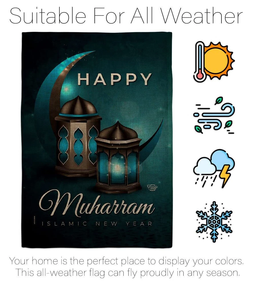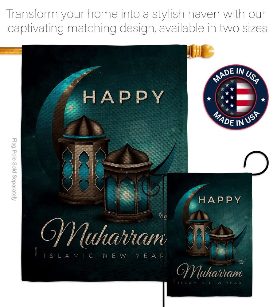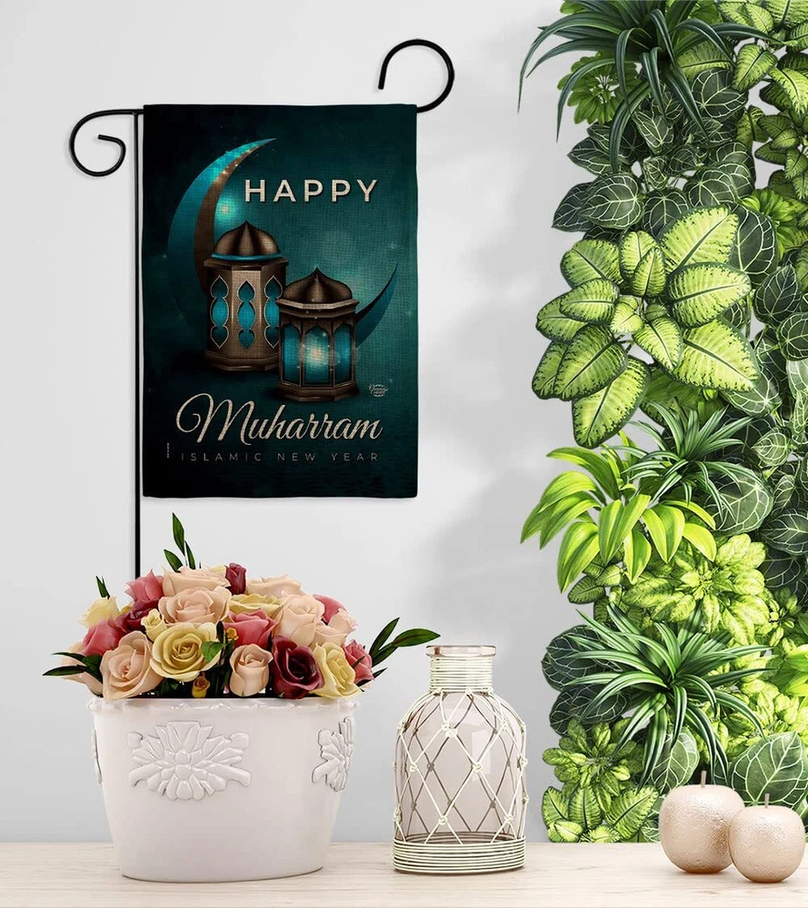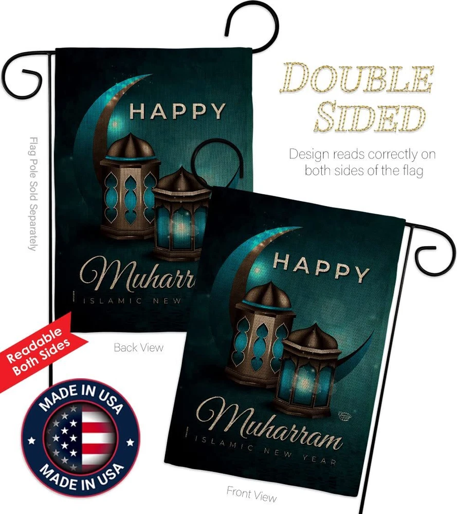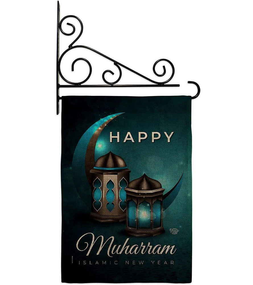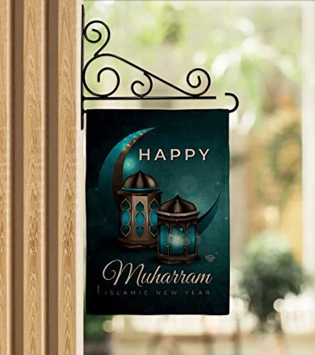 Day of Ashura Burlap Garden Flag Set Wall Holder Celebration Islamic New Year...