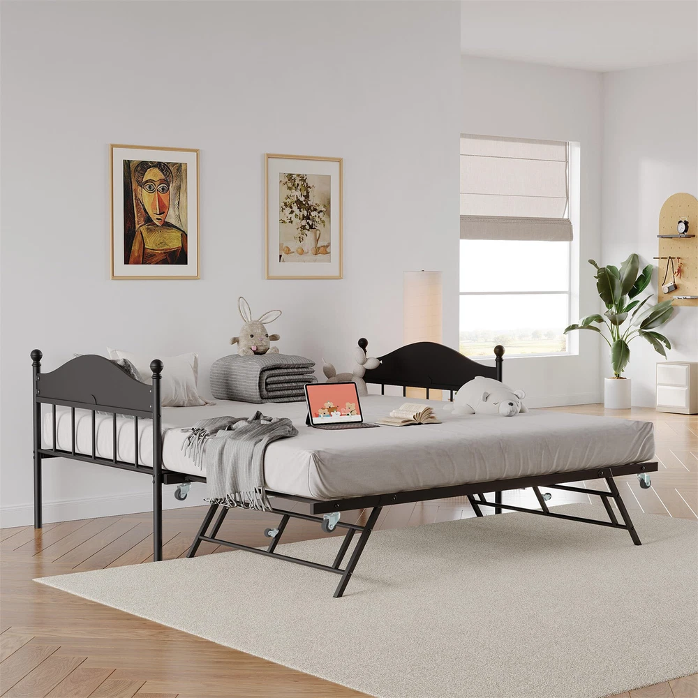 Stylish Headboard 】This daybed with trundle come with a modern and sophisticated look, Paired with exquisite spherical headboard finials, it gives you a stylish and minimalist look. While saving space, it provides you with an convenient user experience, and this sofa bed can blend into any style of room. No Break In The Middle & Durable 】Compared to most trundle beds, our trundle bed does not have a break in the middle, providing a seamless and unified appearance while enhancing the load-bearing capacity of the trundle bed. Constructed with a sturdy metal frame, this daybed with twin trundle offers a long-lasting durability and reliable support. 3-in-1 Space Saver 】You can use this sofa bed with a trundle in three ways. First, store the trundle under the sofa bed to save space. Second, when you have family or friends over, you can pull out the trundle, with the option to raise it for a more comfortable experience. Third, align the sofa bed with the raised trundle to create a King-sized bed frame. Industrial Lockable Casters 】The wheels used for this sofa bed with trundle are industrial-grade, which means they offer strong wear resistance and long-lasting durability. The daybed with trundle features lockable casters, ensuring stability and safety when in use, and easy mobility when needed. Outer Dimensions 】Our daybed is a 74.6 inches (L) x 43 inches (W) x 32.2 inches (H) Twin size sofa bed with 14.2 inches of height from the floor to provide under-bed storage space.This metal daybed is designed to fit one twin size mattress. Multi-Scene Use Functionality 】: This twin sofa bed with casters is perfect for small spaces, helping you save space while being ideal for children. The caster-equipped twin sofa bed allows kids to easily host friends or accommodate more sleepers. Additionally, it can be placed in the living room as a sofa, enhancing your home's hospitality. Easy to Assemble 】This sofa bed is designed for your convenience, featuring easy-to-follow assembly instructions for quick and effortless setup. Spend less time assembling and more time enjoying its versatile design, making it an ideal choice for busy households.If you have any questions, feel free to contact our customer service team. Payment Delivery details Terms of sales About us Contact us Payment We accept payment either via PayPal or any of the following credit cards; Visa, MasterCard, Discover, and American Express. Wishing you a happy life! Delivery details We will provide you with the tracking number on the same day or the next day, and transport your package through UPS, DHL, FedEx and other courier methods. If you have any questions, please feel free to contact me and I will do my best to help you solve the problem. Wishing you a happy life! Terms of sales We offer a one month free return and exchange service, and you don't have to bear any losses. We will provide multiple solutions for you to choose from. If you have any questions, please feel free to contact me and I will do my best to help you solve them. We offer a two-year warranty period. If you have any quality issues with the product you purchased within two years, please feel free to contact me. I will provide you with a free replacement service. If you have any questions, please feel free to contact me. I will do my best to help you solve the problem. Wishing you a happy life! About us We are committed to becoming the best eBay seller, with high-quality suppliers, providing the most sincere service, including pre-sales and after-sales service, to give you a satisfactory shopping experience. If you have any questions, please feel free to contact me, and I will do my best to help you solve the problem. Wishing you a happy life! Contact us If you encounter any problems, please contact me by email at the first time, I will provide you with a solution as fast as possible so that I can give you a satisfactory shopping experience, wish you a happy life! Brand GRVEE Compatible Mattress Size Twin Size Frame Material Metal Type Daybed Features No Box Spring Needed Manufacturer Warranty 5 Years Room Living Room, Bedroom and Guest Room Product Dimensions 78"L x 42.9"W x 18.1"H Item Weight 64.2 Pounds