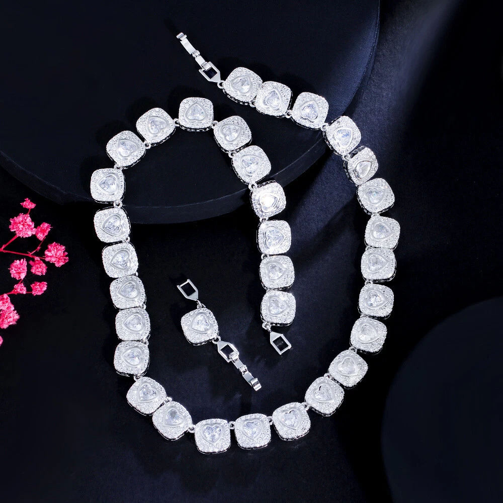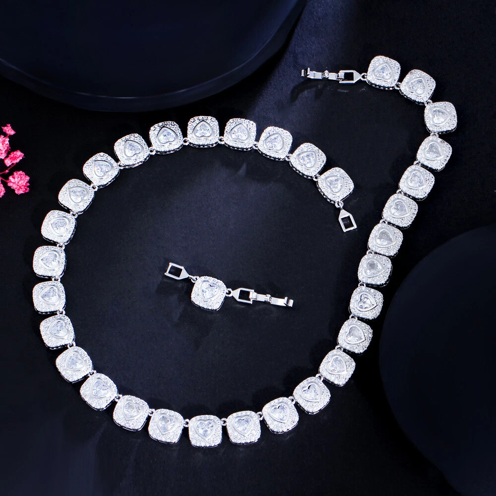 Women Dazzling Gold Plated Heart Cubic Zirconia Wedding Big Tennis Necklace Gift There’s an old saying that: Jewelry is woman’s best friend. And one appropriate luxury jewelry helps to spice up your charm and beauty. And here’s the reason why you choose us: ★ We adopts high-grade Cubic Zirconia, which displays pure and fascinating color; ★ All our items are Elaborate, Gold Plated (white gold plated/yellow gold plated/black gold plated), by which the texture is smooth and with fancy look, and will be appropriate for so many occasions; ★ Our items are with Exquisite Design, which shows your excellent taste, and could catch people’s attention easily. ★ Ideal gift for mother, wife, girlfriend, daughters, brides, bridesmaids, ect. Specification Type: Pendant & Necklace Stone Material: Cubic Zirconia Base Metal Material: Brass Metal Material: Silver Plated, Gold Plated Shape: Heart Inlaid Square Color: White, Red, Green, Blue Suitable Occasion: Daily, Holidays, Party, Engagement, Wedding, Anniversary, Valentine’s Day, Carnival, Performance, ect. Package Includes 1 Piece of CZ Necklace Please note: *Please bear in mind that there might be 1~2cm difference due to manual measurement. *Our digital images are as accurate as possible. However, different monitors may cause colors to vary slightly. *We offer after-sale service, if there is any item problem, please feel free to contact us via eBay message first, your kind understanding is much appreciated. About Us Payment Shipping Returns Contact us About Us Topjewel33 is a newly-established online store which dedicates to provide excellent luxury jewelry products, such as earrings, rings, necklaces, bracelets, brooches, hair accessories, and high grade jewelry sets. We target worldwide market, and we strive for offering you unbeatable low price and satisfied customer service. Payment We accept PayPal payment only. Payment must be received within 7 days from the date of purchase. Shipping We do hope all our customers could receive the order asap, so normally, the order will be sent out within 2 working days. And as the delivery is handled by the third party, sorry that we could not guarantee which date you could receive the package. And sometimes the delivery might be a little bit delay, especially in high volume or holiday seasons. However, please don’t worry and feel free to contact us via eBay message, and we will do our best to help. And we sincerely apologize for any inconvenience may cause. Sometimes custom tax might be required, and we are afraid that it will be covered by the buyers, thank you for kind understanding. Returns We provide 30 days money back return policy. And if you have any problem with the item, please make sure the item is in the original package and feel free to contact us via eBay message first, thank you for kind understanding and cooperation. Contact us We offer customer service, if you have any problem with the item before/during/after the purchase, please feel free to contact us via eBay message, and we will get back to you asap. Thank you for your kind patience.