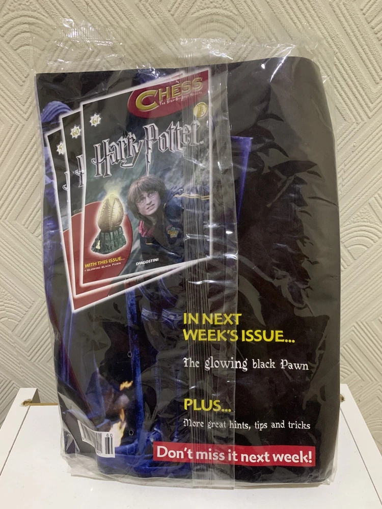 Issue 60: The White Rook with Glowing Windows What a special listing and opportunity this is for someone. I have the Harry Potter Chess Set and Magazines by DeAgostini, which was a weekly collectors edition around 2007. Partwork published weekly by DeAgostini, originally in 48 parts, then extended with advanced chess set to 81. Each issue came with a magazine and parts for the chess set or chess board You have the exciting opportunity to handpick your preferred issue from the series, allowing you to tailor your collection according to your interests and needs. Whether you're seeking a specific piece to complete your set or simply eager to explore the rich content of the Harry Potter Chess Manual, this listing offers flexibility and choice like never before. With each issue, you'll uncover a new facet of the wizarding world, from iconic characters and magical creatures to pivotal moments in the Harry Potter saga. From the courageous knights to the cunning bishops, each chess piece is meticulously crafted to capture the essence of the beloved series, making your chess set a true collector's item. All issues are still sealed. Magazines have creases and folds from storage but still sealed. Some magazines are a little bent due to weight of the boxed figurine in the post and are in the same condition as when they were originally delivered by the Royal Mail. For combined postage and deals please feel free to message me! Happy Bidding :)