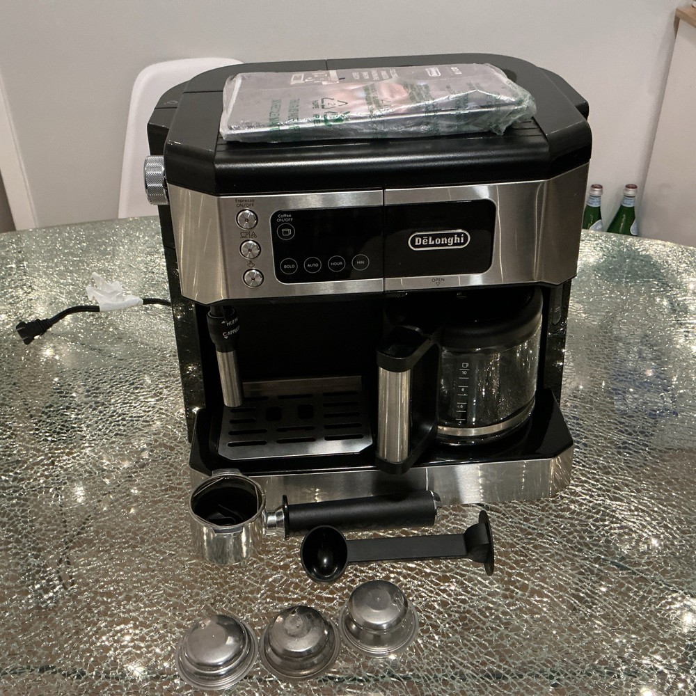 The De'Longhi COM530M All-in-One Combination Coffee and Espresso Machine in Black is a versatile appliance that offers 10 cups of coffee and espresso with its 15 bar pressure system. Made of stainless steel and featuring a digital control panel, this machine allows for easy operation and maintenance. With the ability to make espresso macchiato, espresso, latte macchiato, mocha, hot milk, and cappuccino, this machine is perfect for coffee enthusiasts looking for a convenient and high-quality option for their home.