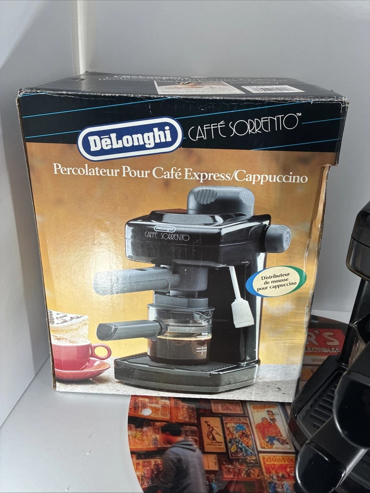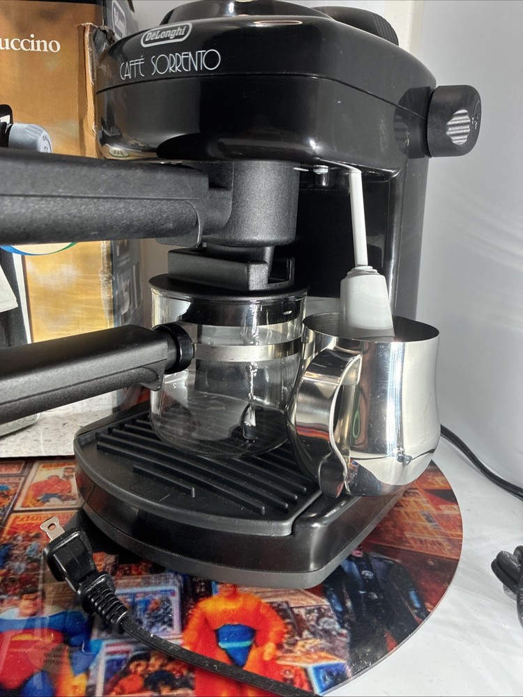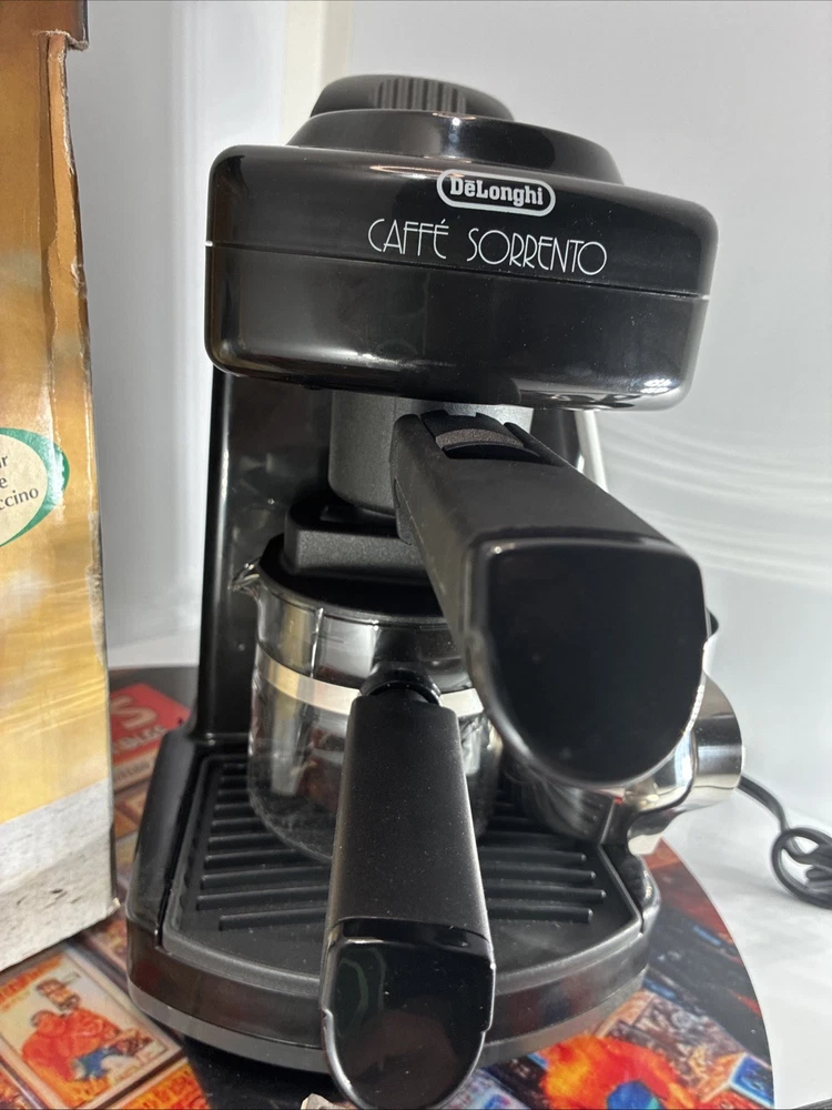 The DeLonghi Caffe Sorrento 4-Cup Espresso and Cappuccino Maker is a sleek and powerful machine perfect for coffee lovers. With a water tank capacity of 1 qt and the ability to make 4 cups of coffee at a time, this espresso machine is ideal for brewing your favorite beverages. The frothing cup feature allows you to create creamy foam for your cappuccinos, while the stainless steel construction ensures durability. The analog control panel and quick heat-up time of 30-35 seconds make operation easy and efficient. Enjoy barista-quality coffee in the comfort of your own home with the DeLonghi Caffe Sorrento.