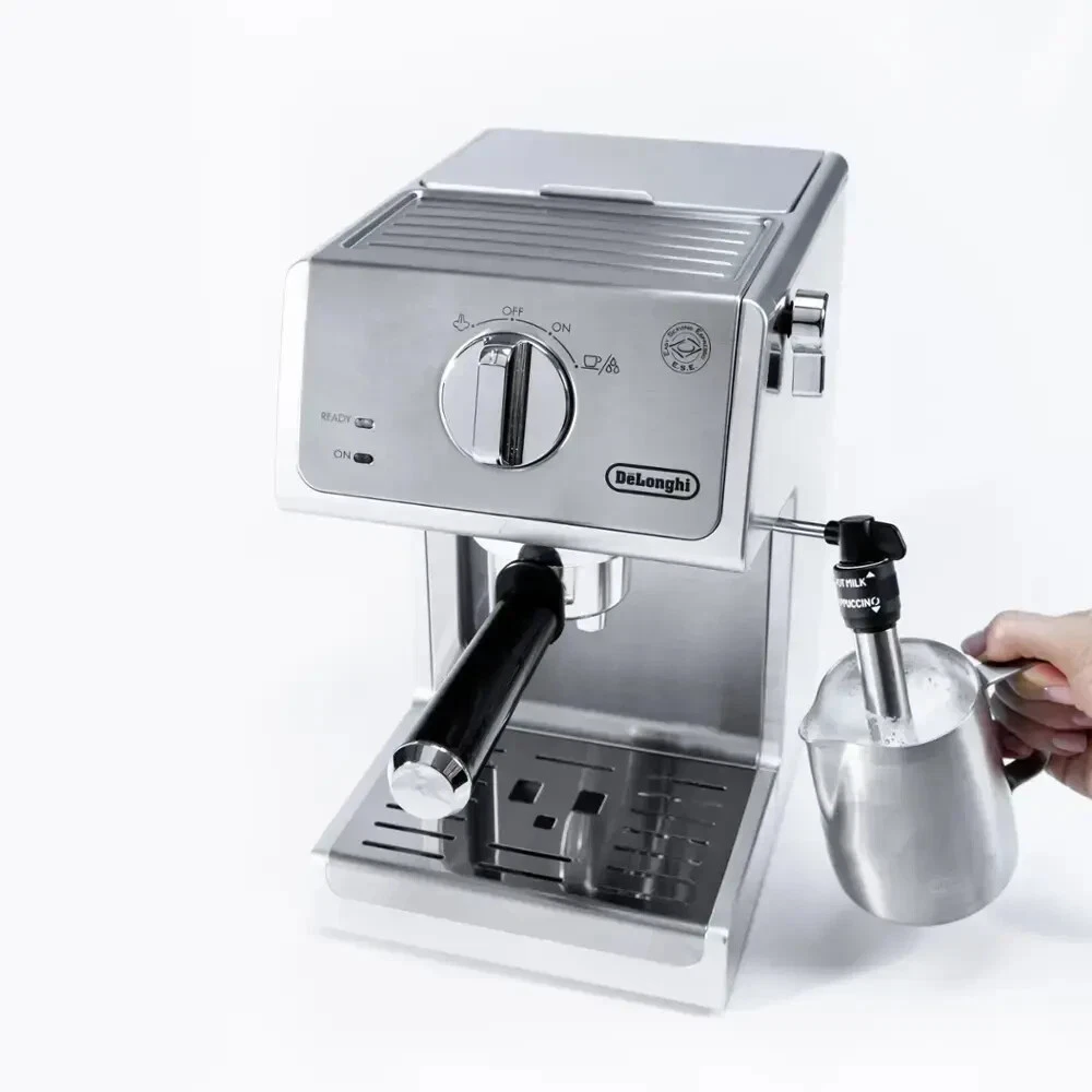 DeLonghi ECP3630 Manual Espresso Machine Cappuccino Maker - Silver NEW BOX Every Cup to Your Liking 15-bar professional pressure assures quality results every time, and adjustable controls allow you to make modifications for your personal taste preferences Brew Like a Pro Whatever your preference – single or double espresso, cappuccino or latte – the machine brews authentic barista-quality beverages just like you enjoy at your favorite coffeehouse. Cappuccino or Latte? With an integrated Premium Adjustable Frother, you can create Italian classic cappuccino with a dryer texture milk-foam or choose Hot Milk setting for your latte. One Espresso Shot or Two? The three-in-one filter holder accommodates the included filter baskets for single espresso, double espresso, and easy-serve espresso pods – whatever your preference. No Waiting Between Cups The Advanced Cappuccino System maintains the optimal temperature so you can brew cup after cup instantly Accommodates Taller Cups If you’d prefer a larger size beverage, no problem. The bottom tray of the unit is easy to adjust or remove to fit taller cups. Sleek Space-Saving Design With a sleek profile, compact design and narrow footprint, each model fits beautifully on a kitchen countertop – without taking up too much space Convenient Water Tank The water tank is simple to remove, refill and reattach, and the water level is easily visible to eliminate the guesswork Easy to Clean Removable water tank and drip tray make for easy cleanup, and the parts are dishwasher safe What's Included DeLonghi Espresso Machine