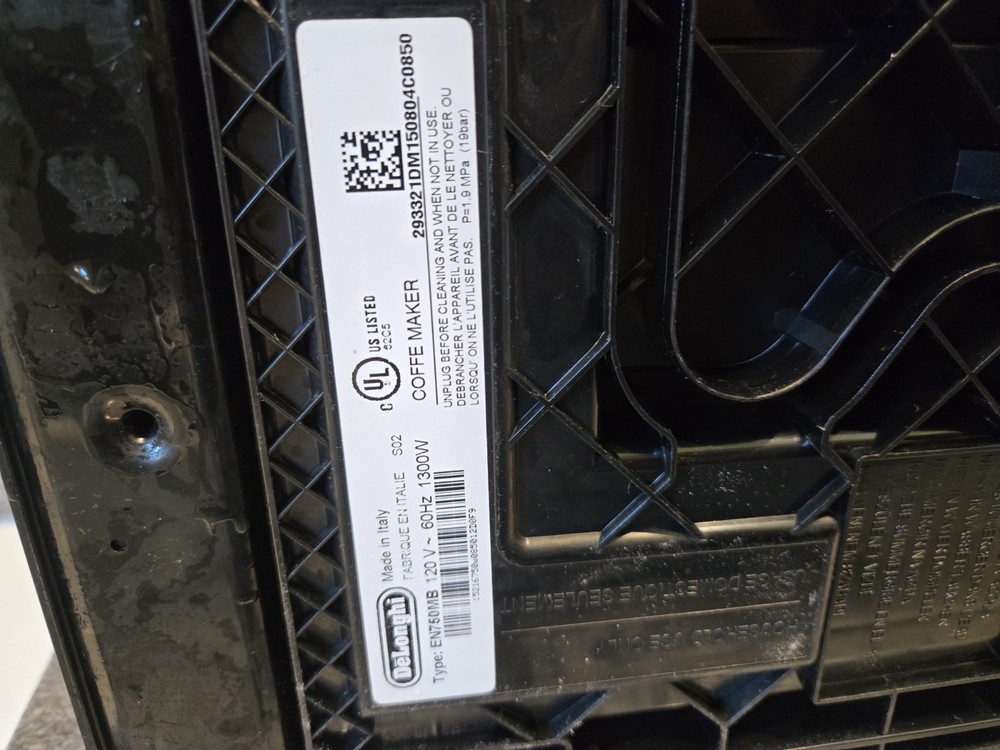 Water Tank Capacity: 1.3 L Type: Espresso Machine Item Height: 13 in Item Width: 10.8 in Type of Coffee Made: Espresso Brand: De'Longhi MPN: EN750MB Material: Aluminum Model: EN750MB Number of Cups: 1 Coffee Type: Capsule Color: Silver Bar Pressure: 19 bar Compatible Capsule/Pad System: Nespresso Item Weight: 12.6 lbs. gtin13: 0004438740750 Power Source: Electrical Finish: Metallic UPC: 0689993006918, 0044387407502, 0004438740750 Item Depth: 7.6 in Manufacturer Color: Metal