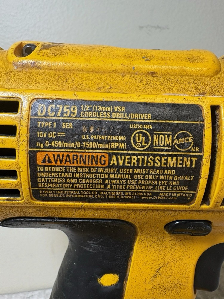 The Dewalt DC759 Cordless 1/2" 18v Drill Driver is a high-quality power tool designed for home and workshop use. With a 1/2" chuck size and 18V voltage, this drill driver is ideal for various drilling tasks. The cordless feature and handheld design make it convenient and easy to use. Made by the trusted brand Dewalt, this drill driver is a reliable choice for any DIY project or professional job.