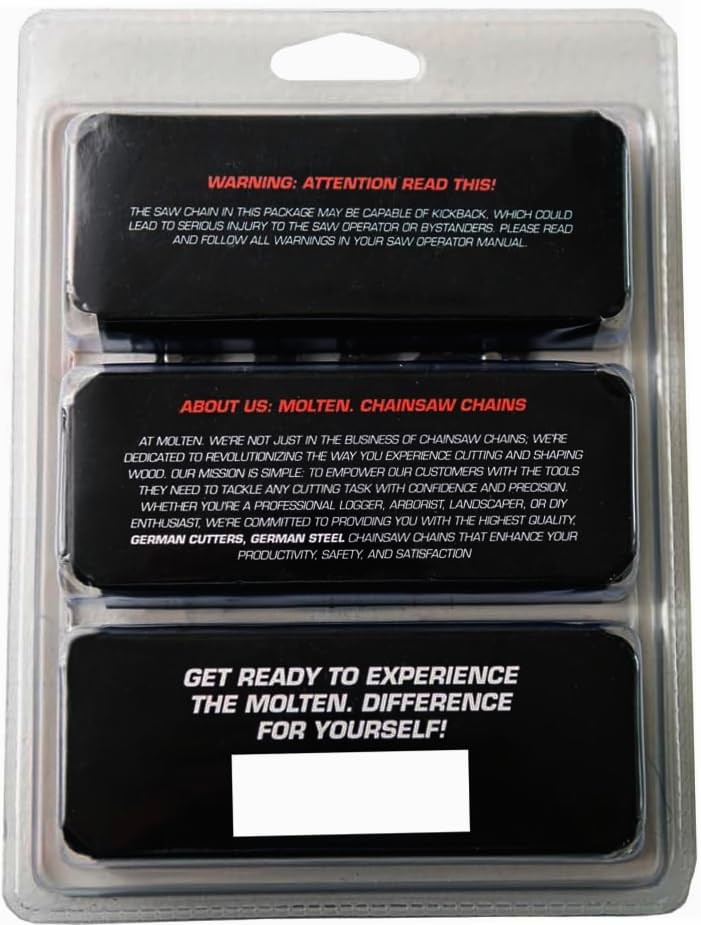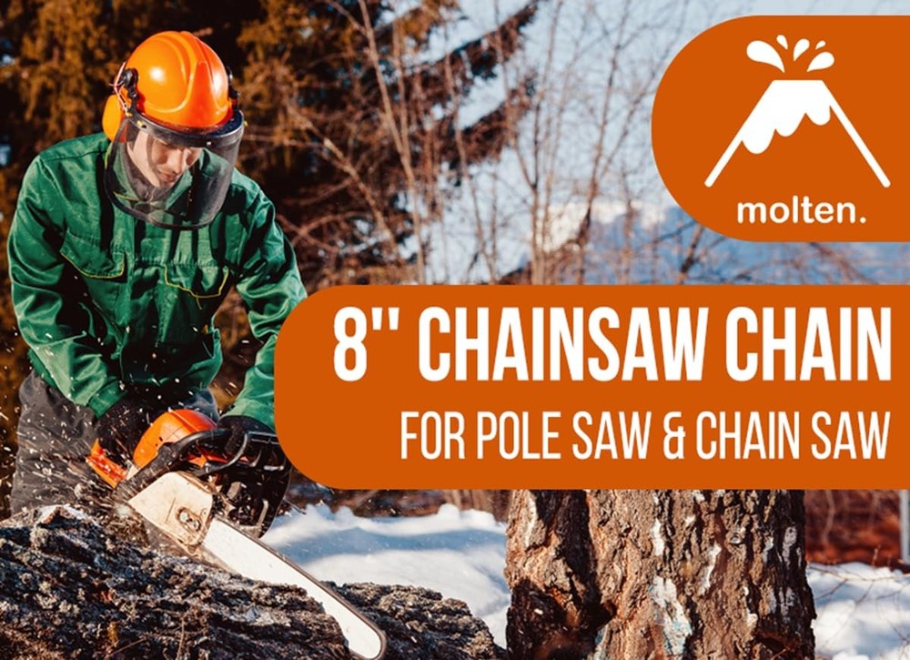 MoltenSales Chainsaw Chains are SO HOT they will melt through all your cutting needs. This chain replaces the following OEMs; Oregon R34, 90PX034E, Dewalt DWO1DT608; Black+Decker RC800, 90616714, 623382-00; Troy-Bilt 753-05592, Craftsman CMZCSC8; Poulan 581562501, 952051549; Husqvarna H38-34; Remington 8SC, 913-04094, 753-05592 Chain Specs: Semi-Chisel; Chain Type: 90PX; Pitch: 3/8'' Low Profile Gauge: .043''; Drive Links: 34; Bar Length: 8'' This Chain is compatible with the following Pole Saw Models: Dewalt DCPS620, DCPS620B, DCPS620M1; Black+Decker LPP120, NPP2018; Troy-Bilt PS720R, TBPS-8 DL; Husqvarna 128PS; Craftsman CMCCSP20M1, CMCCSP20, CMCCSP20B, 3585; This Chain is compatible with Pole Saw Models: Oregon PS250, PS250-E6, PS250-A6; Worx WG310; Remington RM0815P, RM0818BPS, RM2599, 108526-01; Poulan PP446T, PP445, PP446, PP258TP, PP258TPC, PP338PT, PP5000P, PR25PS, PR28PS, PP28PD, PP5000P, PPB5500P This Chain is compatible with Chainsaw Models: Dewalt DCCS623B, DCCS623L1; Black+Decker CCS818; Remington RM08181B, 104316-04, 104316-05 Please Verify Fitment and Drive Link Count Before Purchasing. Molten chains are made with OEM Quality with aftermarket prices!