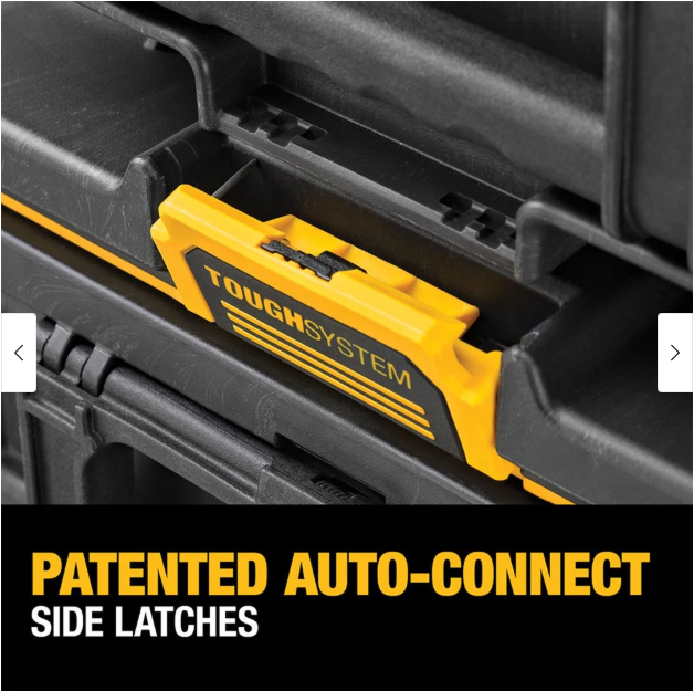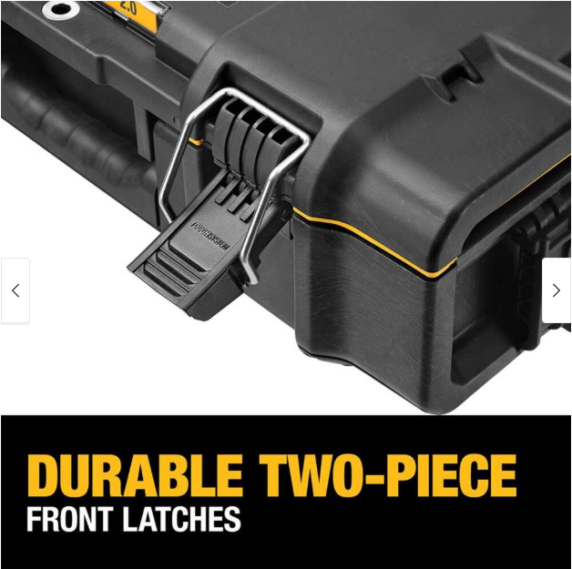The ToughSystem 2.0 Toolbox offers one-hand operation with its patented auto-connect side latches and 2-piece metal front latches. This toolbox offers 20% larger storage capacity when used with DWST08300 and DWST08450 as part of a tower. The ToughSystem 2.0 Toolbox is built for real jobsite conditions with high-impact protection. The ToughSystem 2.0 Toolbox is backwards compatible with any ToughSystem product. 2 large organizer cups with removable dividers for optimal organization 2-piece metal front latches for added durability IP65 rated for dust water resistance