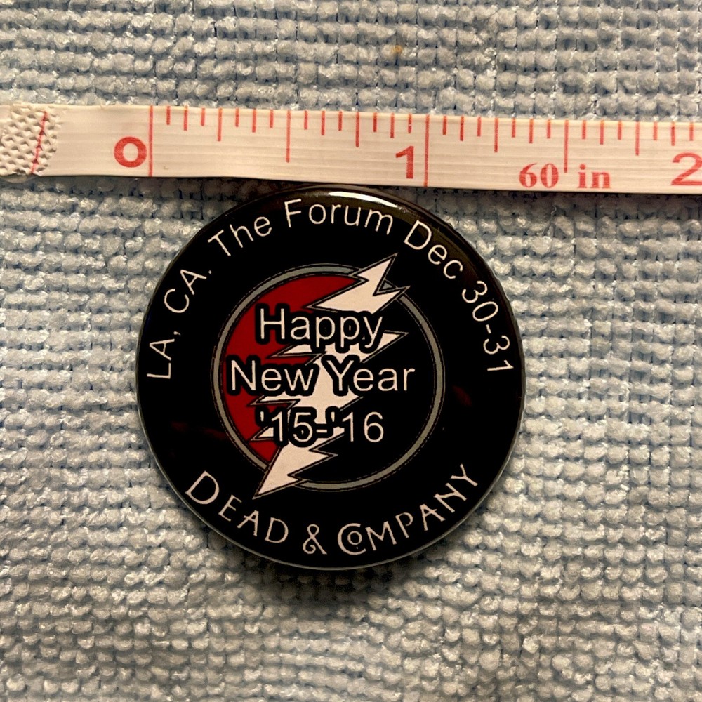This unique pin features the Dead & Company logo and commemorates their 2015/2016 New Year's Eve concert at The Forum in Los Angeles. It's a great addition to any music memorabilia collection, especially for fans of the Grateful Dead and rock & pop music. The pin was made in the United States and is an original piece. It's perfect for collectors or anyone who wants to show their love for this iconic band. RARE BUTTON SOLD AT THE 2015 / 2016 NEW YEARS EVE CONCERT AT THE FORUM : LOS ANGELES