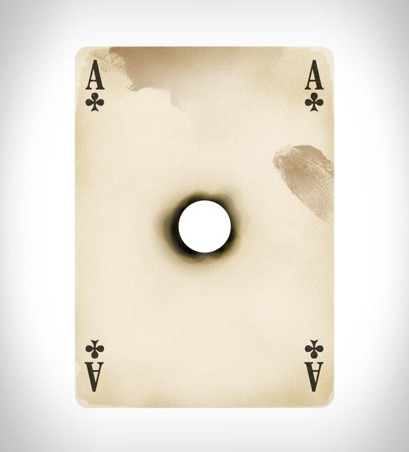 This is a pair of decks; the ORIGINAL Dead Man’s Deck, and the second version of it. Neither is the “unharmed” version. They were NOT sold plastic wrap on the tuck box. Please note that the v1 tuckbox has a stray drop of ink in the upper right corner from the factory, as shown in the close-up photo. Sure be a conversation starter, these cleverly done and totally unique decks are based on the infamous death of James "Wild Bill" Hickock, a Civil War veteran and celebrated gunfighter. Wild Bill was shot in the back during a poker game before he could play his hand...and legend has it that he held Aces and Eights: The Dead Man´s Hand. Each of the morbid cards in this deck has a bullet hole straight through its middle, and the infamous "Dead Man’s Hand” is splattered with bloody red ink. The design is true to the time period, with an ornate, grey pattern and old-style faces. Please check my other listings for many sought-after collectible poker decks including rarities from Stockholm 17, Lotrek/Oath, Bicycle, and Kickstarter exclusives. Thank you!