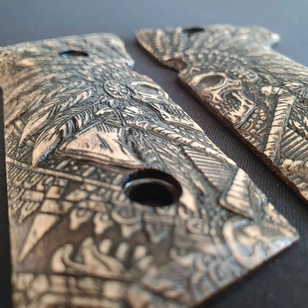 New Beretta 92X, M9A3, M9A4 grips with "Dead Reds" design. Carved from solid natural wood - Cut by CNC. Grinded, painted and oiled by hand
