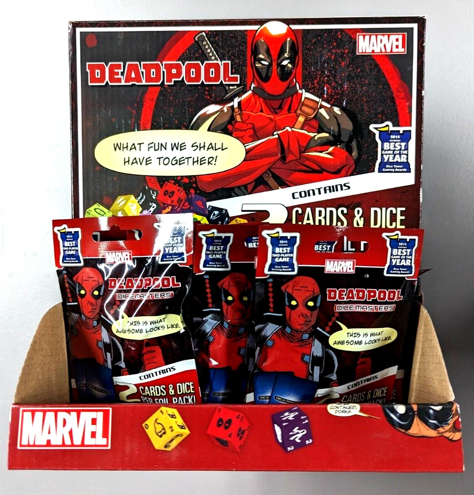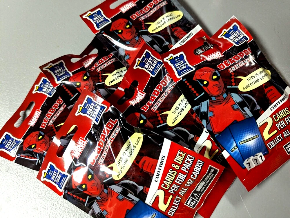 Deadpool - Dice Masters Foil Packs Packs contain: 2 dice and 2 cards Buy 3 or more packs for 15% off and FREE SHIPPING Ships within 3 business days with USPS tracking Local pickup available from Fair Haven, NJ
