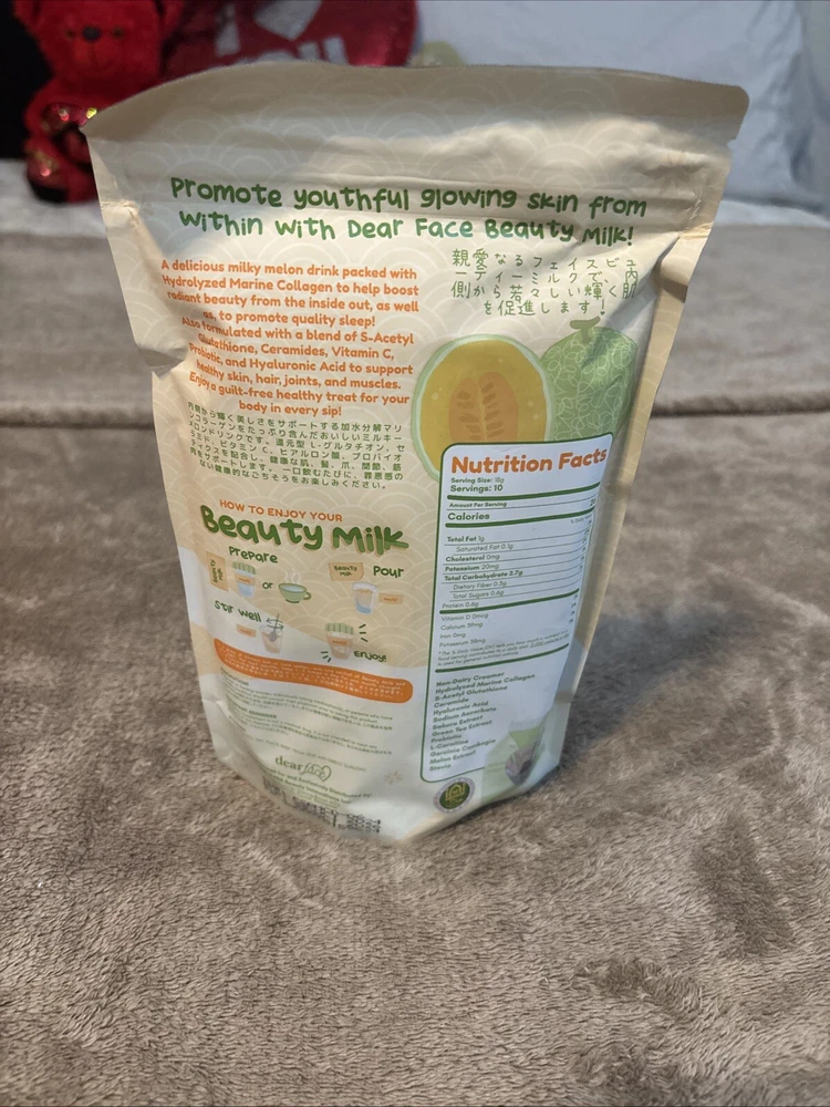 Dear Face Beauty Milk Japanese Collagen Melon Drink, 10 Sachets X 18g