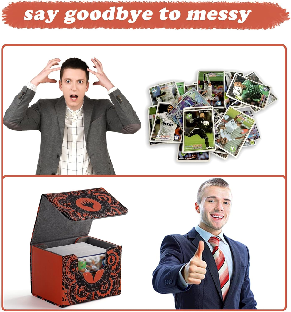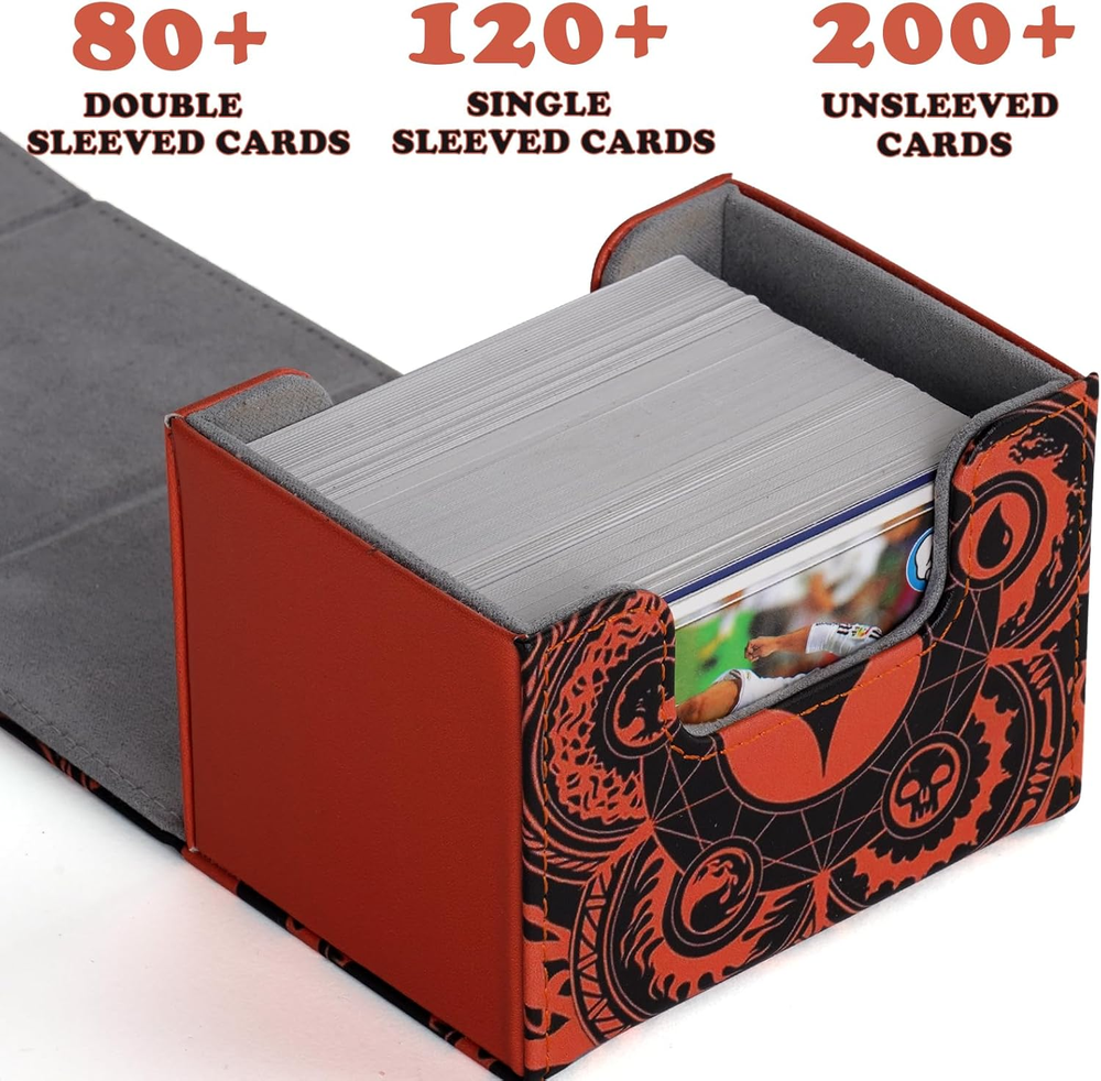 Premium Material: The Full Color Printed waterproof pu leather outer layer, while the soft ultra-fine fiber inner layer can protect the card from scratches. In addition, four strong magnets can ensure safe sealing and facilitate safe transportation Large Capacity : The MTGPRO card storage box can hold 80+ double-sleeve cards, 120 single-sleeve cards, or 200+ unsleeved cards. Its U-shaped wide mouth opening and flip-cover design allow for easy retrieval of your cards, ensuring smooth and hassle-free gameplay Versatile Compatibility: Our Card Deck Box is Compatible with multiple standard cards, perfect for MTG cards, yugioh cards, One Piece,TCG cards, sports cards, cards from board games, and more Ideal Gift Choice :This Card Deck Case is perfect for trading card game enthusiasts. Combine stylish functionality with large storage, not just a considerate gift, but also a useful one 100% Satisfied After Service :MTGPRO offers a 12-month worry-free service, feel free to contact us with any questions or concerns. We're here to help and find solutions to any issues you face Product Description