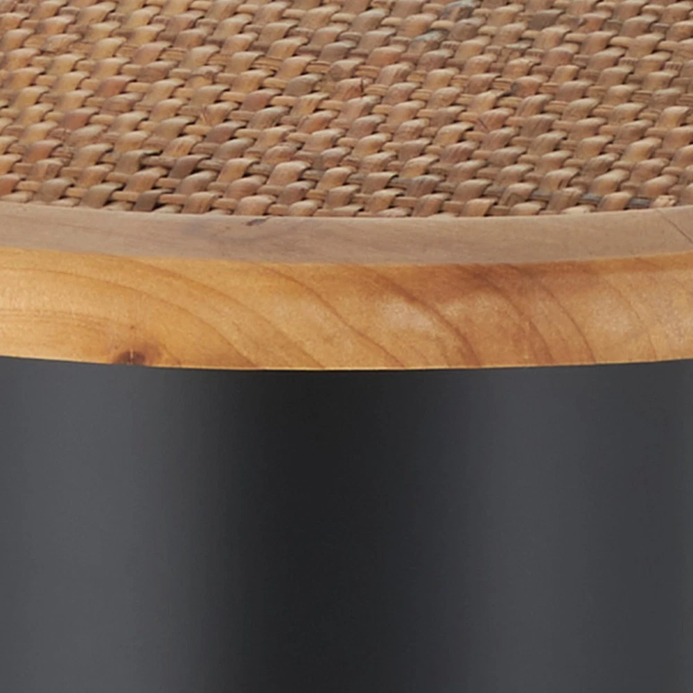 BOHEMIAN TABLE: Designed with a free-spirited charm where vibrant hues, eye-catching patterns, and whimsical accents transform your space and showcase your personality METAL TABLE FOR LIVING ROOM: This black side end accent table is crafted from sturdy iron and MDF, combined with the natural beauty of fir and rattan BLACK AND BROWN LIVING ROOM TABLE: Round table is characterized by a matte black finish that contrasts beautifully with its brown rattan tabletop, resulting in a bohemian aesthetic ROUND SMALL TABLE: Iron accent table stands out with its unique brown rattan tabletop which adds an element of organic texture to the overall look LARGE SIZE CORNER TABLE: The black metal accent table measures 15.63L x 15.63W x 20H inches, and weighs 6 lbs