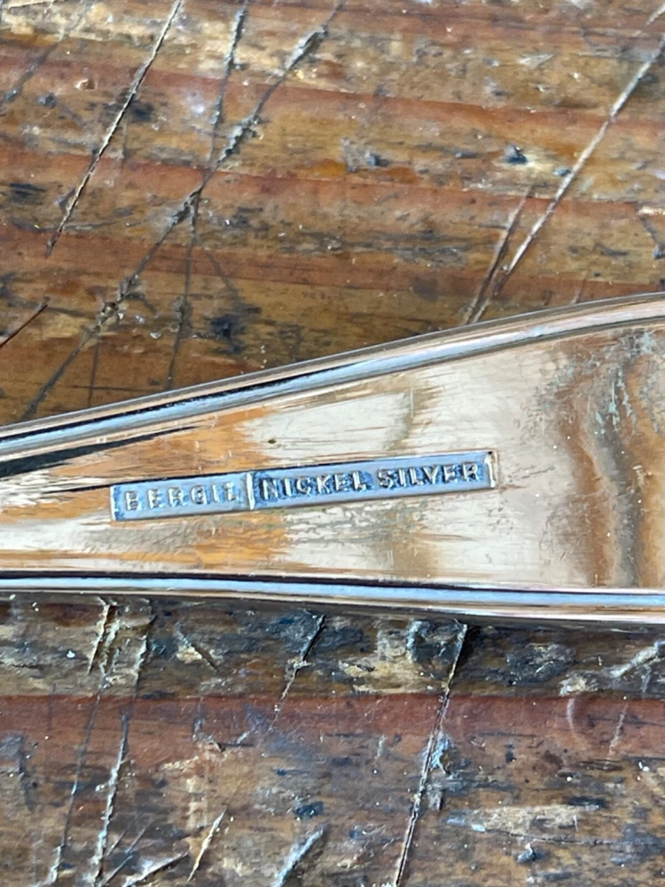 Material: Silver Plate Style: Art Deco Product: cutlery Antique: Yes Seller Notes: “Very presentable and useable with minimal evidence of use” Age: 1900-1940 Brand: Bergil Composition: Nickel Silver