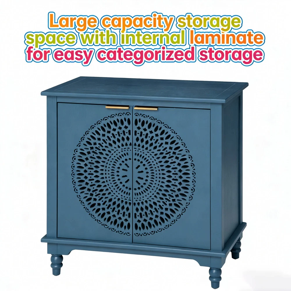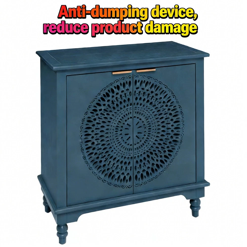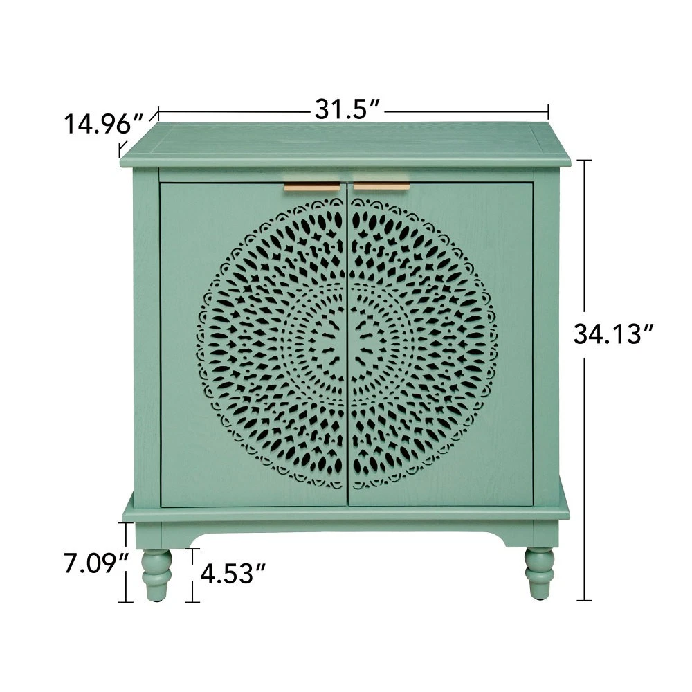 American Style Hollow-Carved 2-Door Accent Cabinet Sideboard Buffet Storage Cabinet for Entryway Living Room Bedroom 🌟 Product Highlights | 1-Year Warranty & 30-Day Free Return 🌟 Elevate your home decor with our exquisitely crafted American-style hollow-carved accent cabinet! Blending timeless design with practical storage, this versatile piece is perfect for entryways, living rooms, bedrooms, and more. Enjoy peace of mind with our 1-Year Quality Warranty and 30-Day Free Return Policy —shop with confidence! 🎨 Available Colors Elegant Blue Soft Light Green 📐 Product Specifications Attribute Blue Cabinet Light Green Cabinet Origin China China Material High-Quality MDF with Manchuria Ash Veneer High-Quality MDF with Manchuria Ash Veneer Assembled Length 31.50 Inches 31.50 Inches Assembled Width 14.96 Inches 14.97 Inches Assembled Height 34.13 Inches 34.26 Inches Product Weight 40.57 Lbs 40.57 Lbs 📦 Packaging Details (Both Colors) Packaging Length: 35.44 Inches Packaging Width: 18.51 Inches Packaging Height: 13.51 Inches Packaging Weight: 46.74 Lbs ✨ Key Features Exquisite Hollow-Carved Design : The cabinet finish boasts delicate hollow patterns that add a touch of elegance to any space. Not only decorative, but the hollow design also enhances air circulation inside and allows easy viewing of your stored items. Spacious & Organized Storage : Featuring a large-capacity interior with an adjustable laminate behind the two doors, this cabinet makes it easy to categorize and store various items—from tableware and books to accessories and more. Stylish Hidden Golden Handles : The hidden installation of the golden handles creates a sleek, seamless look, elevating the cabinet's overall aesthetic appeal. Safe Curved Top Edges : Unlike sharp right-angle edges, the curved edge design of the top panel ensures safer use, making it friendly for families with kids and pets. Premium Finish : Crafted with a smooth and delicate Manchuria ash wood finish, the high-quality MDF is covered with real Manchuria ash veneer, showcasing natural and clear wood grain for a luxurious feel. Anti-Tip Device : Equipped with an anti-dumping device, this cabinet effectively reduces the risk of tipping, providing added safety for your home. Easy Adjustment : Comes with back panel buckles that allow for easy overall fine-tuning, ensuring the cabinet stands stably on any flat surface. 🛡️ Warranty & Return Policy We stand behind the quality of our products. All our accent cabinets come with a 1-Year Warranty against manufacturing defects. If you are not completely satisfied with your purchase, you can enjoy a 30-Day Free Return (no questions asked). Our dedicated customer service team is always here to help—feel free to contact us with any issues! 🏡 Versatile Home Decoration & Storage Solution Whether you need a storage cabinet for your entryway to keep shoes and keys organized, a sideboard for your dining room to store tableware, or a decorative cabinet for your bedroom to display photos and accessories, this American-style hollow-carved cabinet is the perfect choice. Its classic design complements any home decor style, adding both functionality and charm to your space. Don't Miss Out! Add This Stylish & Practical Accent Cabinet to Your Cart Today!