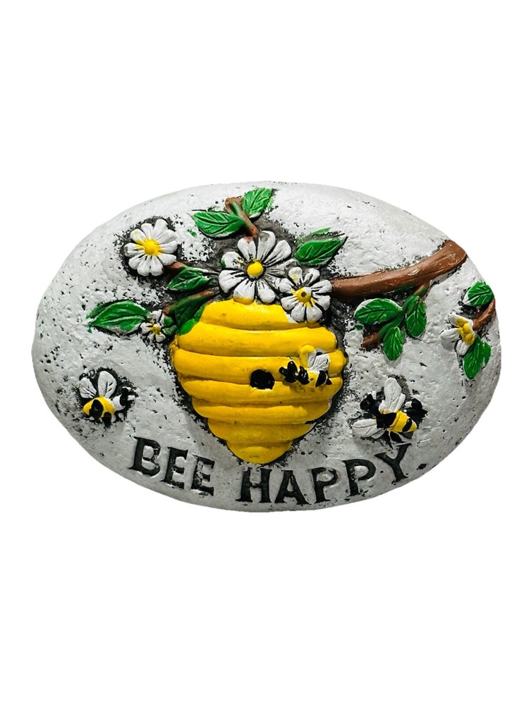 This decorative concrete garden stone features a happy frog pattern surrounded by colorful flowers, measuring 5 inches in length and 3 inches in height. It is suitable for both indoor and outdoor use, with a modern style and weatherproof design. The stone is adorned with bees and flowers, making it a charming addition to any porch, flower bed, or lawn during the summer season. Made of stone material, this small statue adds a touch of nature-inspired beauty to your garden decor.