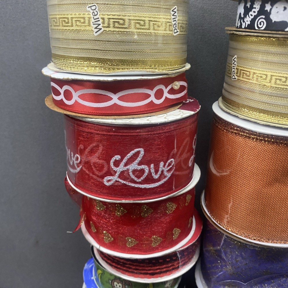 $ 8.38NEW! Lot of 20 Rolls Of Wire Edge Ribbon-Red, Gold, Black And Patterns - See Pic