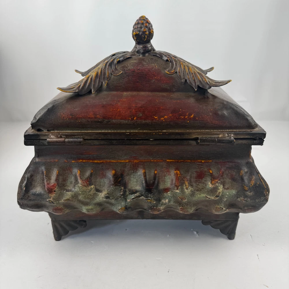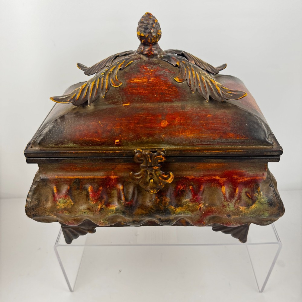 Decorative Metal Hinged Trinket Box Jewelry Storage Keepsake. Pre-owned item in good condition, has some wear as you'd expect from a used item. N oticed some slight imperfections due to use and age. Great home decor. Please use the zoom feature to determine shape and condition, check all pictures and measurements carefully for detailed viewing as they are part of the description and help you with your purchase. I invite you to always check my new listings, buy with confidence. Smoke free home. Thank you, have a wonderful day!! MTL - 5