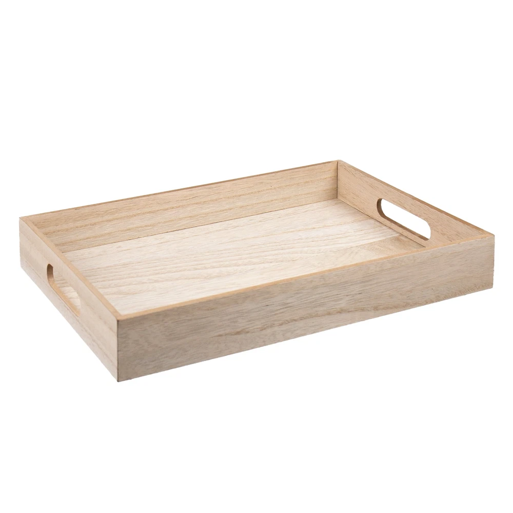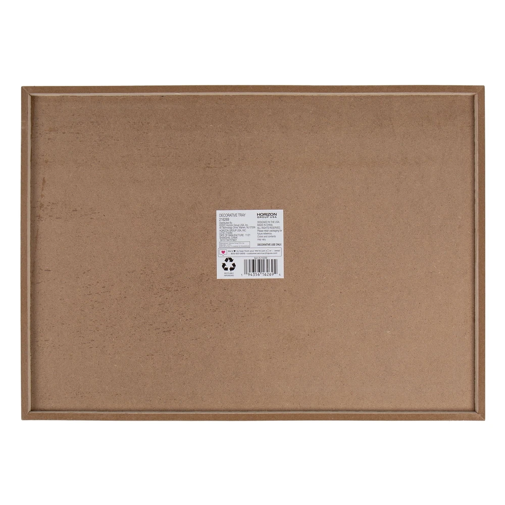Breakfast (or dinner!) is served with the On The Surface Decorative Rectangle Tray! Bring this home décor tray to life with everything from paints to stencils, gemstones and more—try adding phrases like “Happiness Lives Here” and “Breakfast In Bed.” Measuring 10” x 14”, this serving tray is big enough to fit plenty of words, messages or your own creative scene. Finish it with a stain for a classic look or use chalkboard paint to get that trendy farmhouse-chic effect, the choice is yours! No worries about slipping and sliding—the 2”-deep edges mean whatever you fill it with will stay put! Recommended for ages 14 and up. On The Surface Decorative Rectangle Tray, Customizable Serving Tray With Handles Paint and embellish your own On The Surface Decorative Rectangle Tray Use stencils and decals to decorate the blank surface—make it your own with names, monograms, inspirational messages, and other decorative elements Carry by the cut-out handles from room to room—load up your s’more supplies to take to the bonfire Elevate your coffee table with a serving tray styled in conjunction with a candle, book, mini plant, coasters, and more Includes : 1 Rectangle Decorative Tray With Handles (14 x 2 x 10 in.) Age Range : 14+