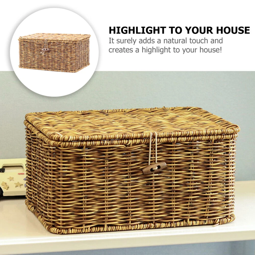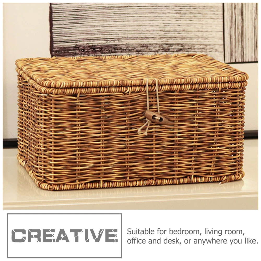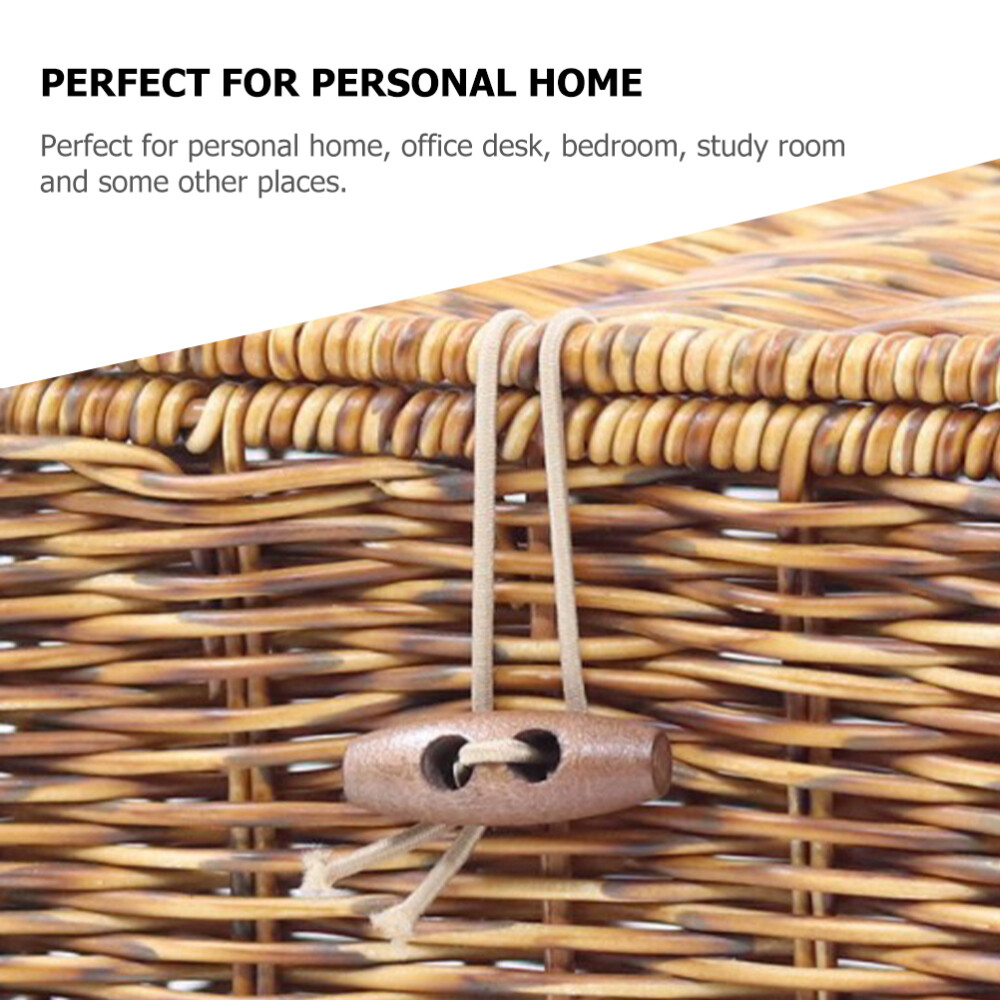 Decorative Woven Storage Basket with Lid for Desktop Organization