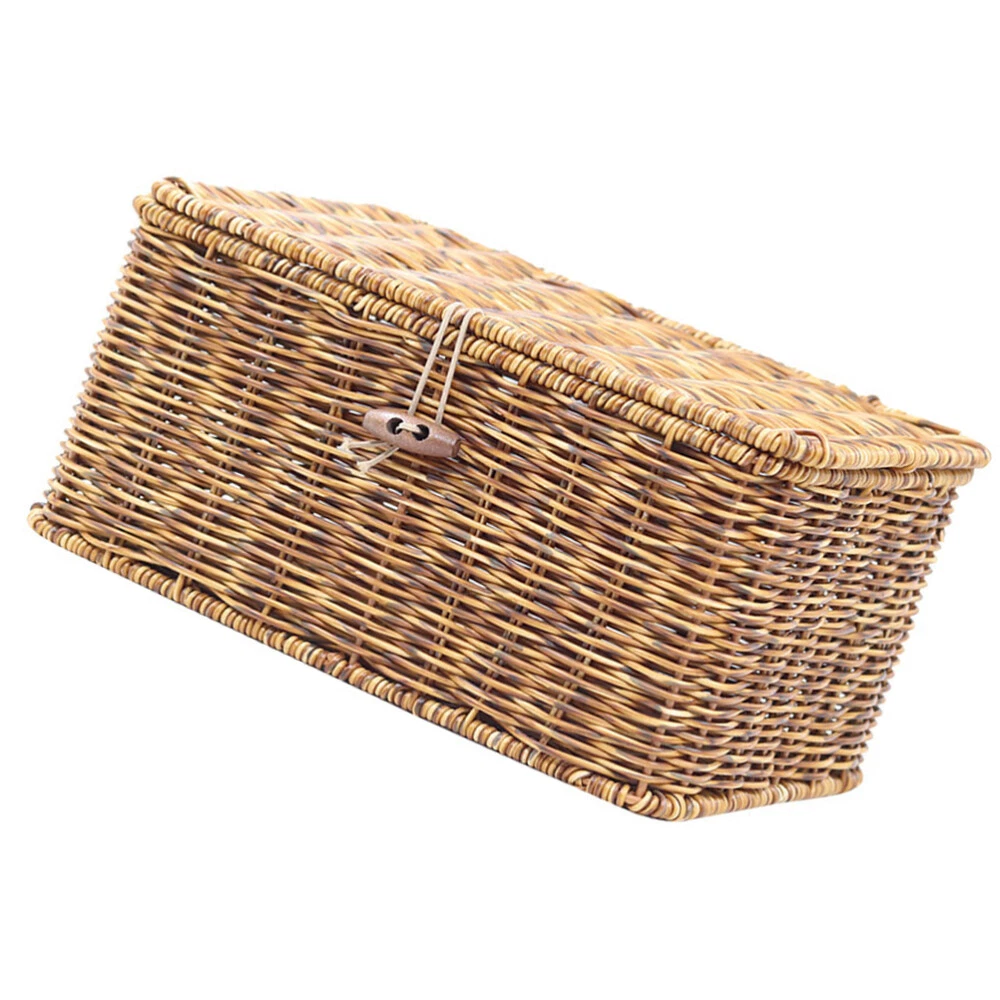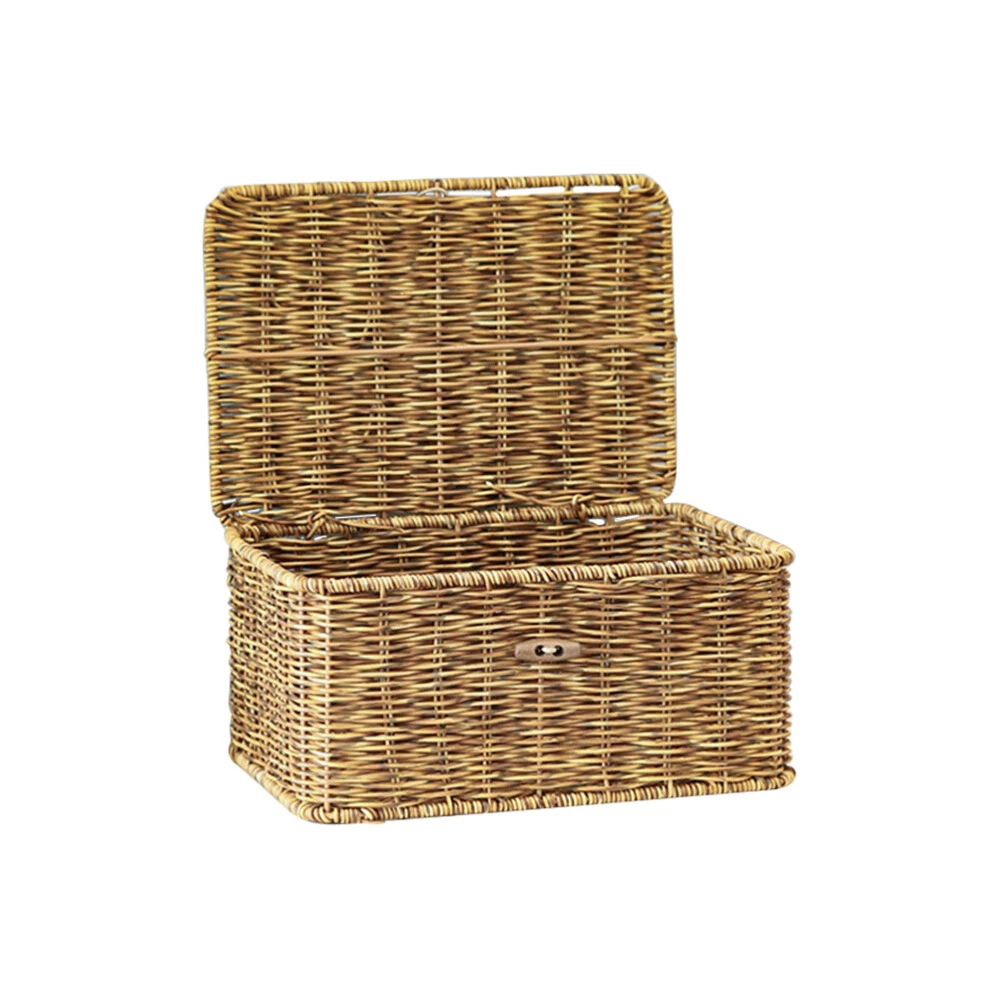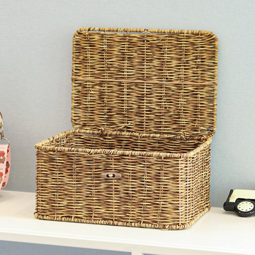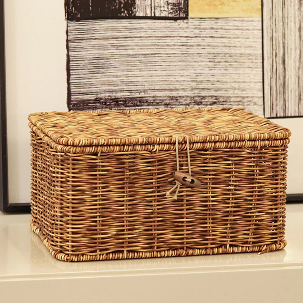 Decorative Woven Storage Basket with Lid for Desktop Organization