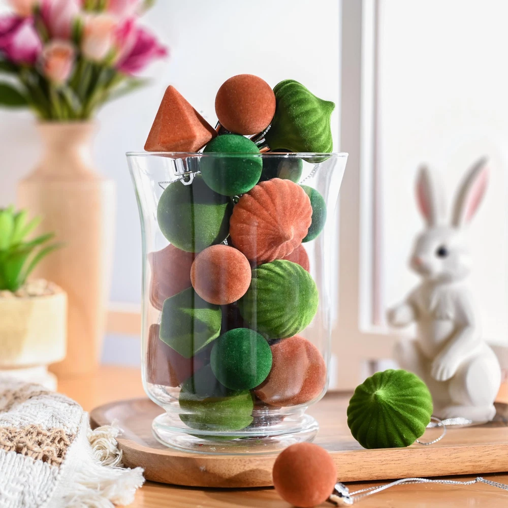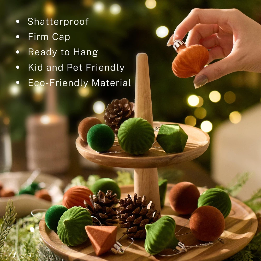 【Velvet Design】The mini Christmas ball ornaments feature a flocked design for added elegance. The soft texture enhances your home decor, elevating the overall aesthetic. Most importantly, there’s no glitter mess anywhere 【Shatterproof Balls】These velvet ornaments for Christmas tree are made of durable plastic to provide excellent shatterproof ornaments 【Kid&Pets Approachable】The Christmas ball ornaments are crafted from lightweight and shatterproof materials, ensuring a comfortable decorating experience for both and pets. They can engage in fun without any concerns 【Ready to Hang】These velvet Christmas ornaments come with pre-threaded hanging strings, making them convenient and easy to hang 【Measurements】24ct in total. Each ball ornament measures about 1.18-1.77inch/3-4.5cm 【Multipurpose Usage】These Christmas decorations are designed for all-season use, perfect for adorning Christmas trees, tabletops, centerpieces, and more during Christmas, Fall, Halloween, Thanksgiving, and beyond 【Complement to the Festival】Visit our brand for matching wreaths and garlands to complete your festive look