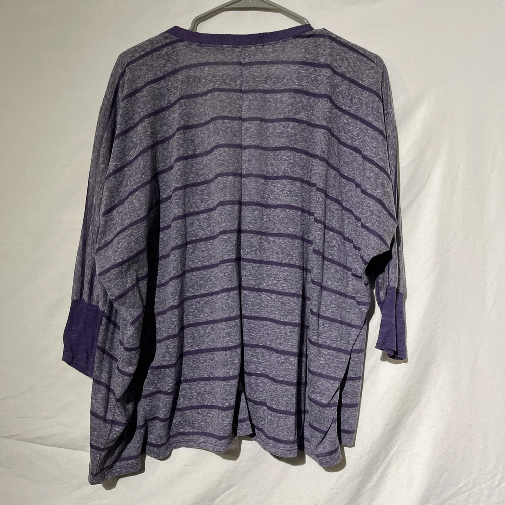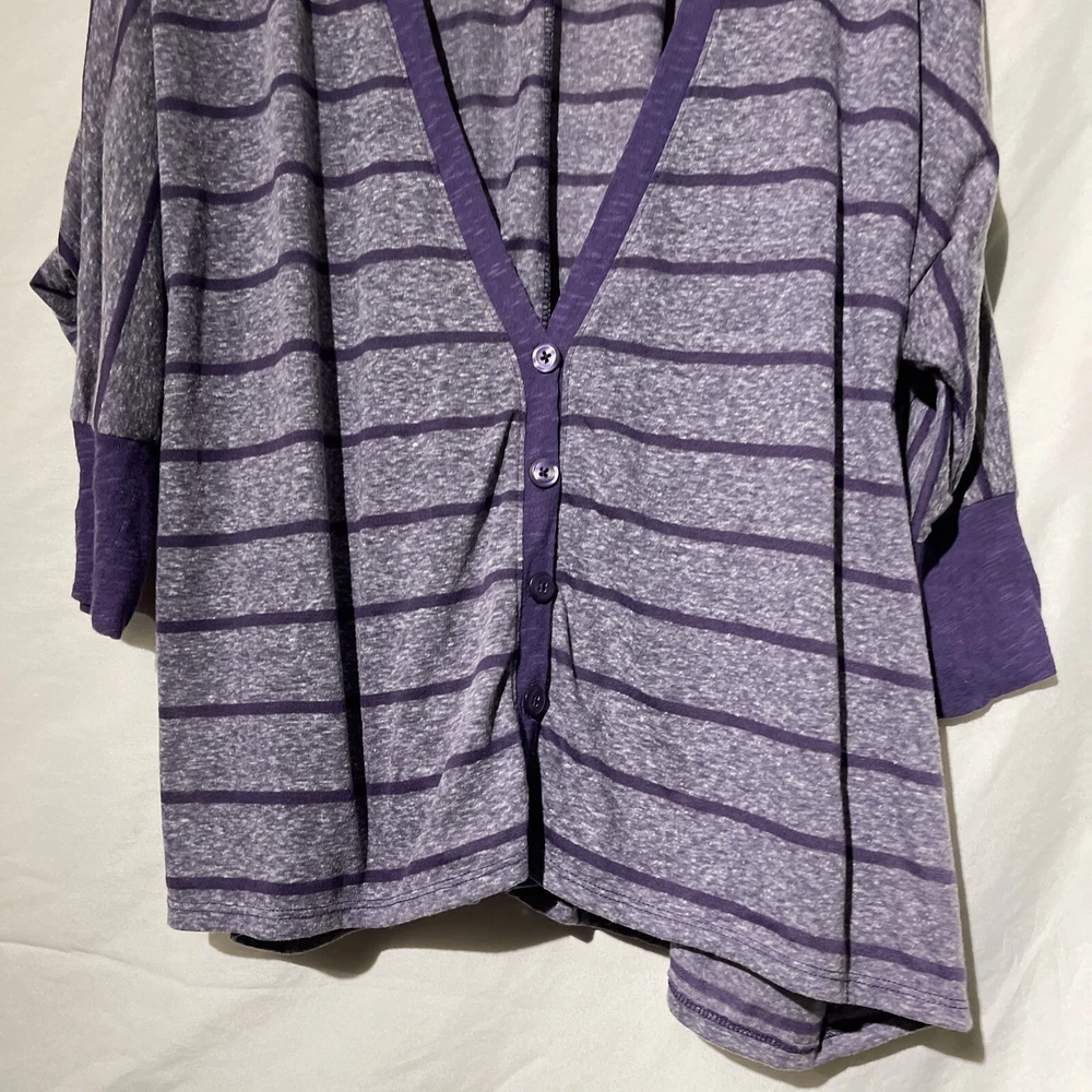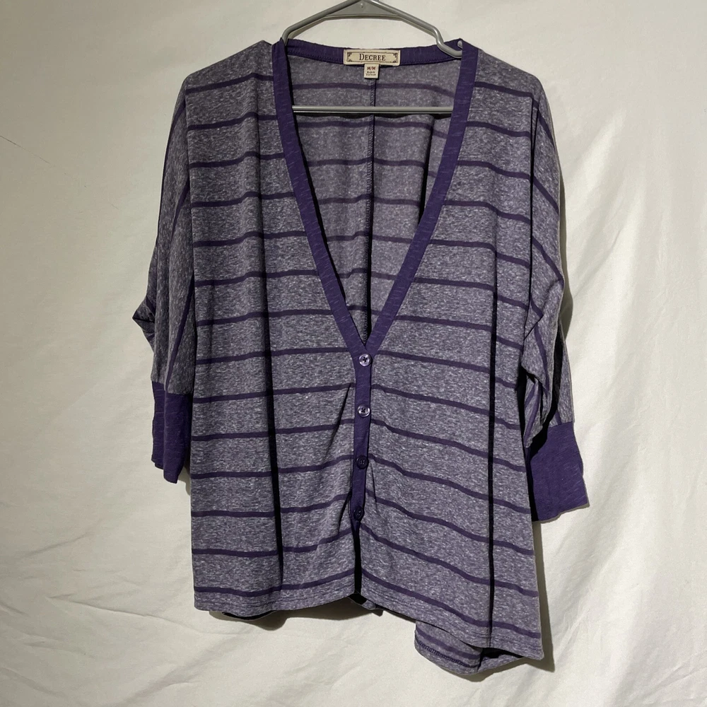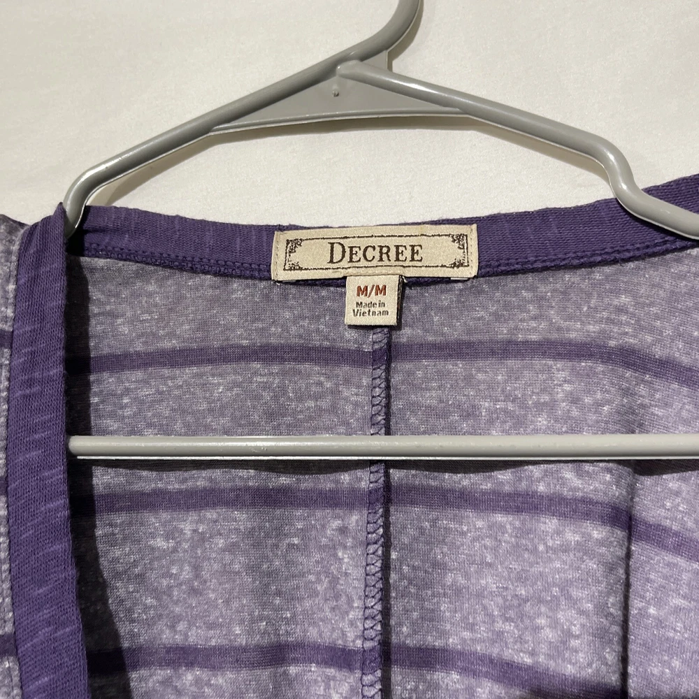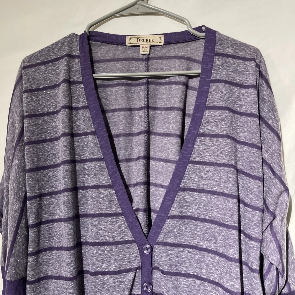 Decree Womens Size Medium Striped Long Sleeve Cardigan Over Shirt Top Purple. Condition is Pre-owned. Shipped with USPS Ground Advantage.