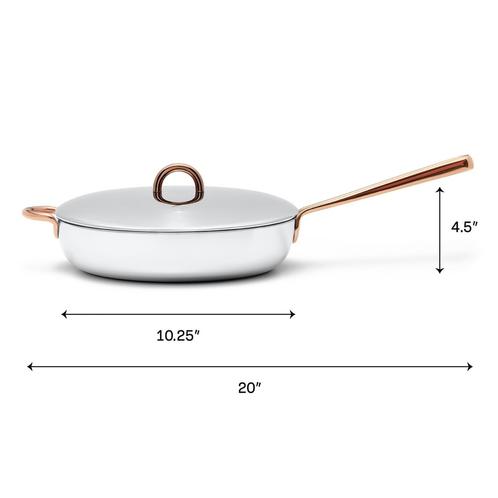 Deep Cut 3-Quart Stainless Steel Sauté Pan | Hybrid Skillet & Sauté Pan with Sloped Sides, Welded Handles | Induction & Oven Safe, Dishwasher Friendly The Best Of Both Worlds: Why choose between a skillet and a sauté pan when you can have both? Deep Cut combines tall sides for splatter-free braising with a wide base and sloped edges for effortless stirring and flipping. Built for Every Stovetop: Whether you’re using gas, electric, or induction, this pan delivers top-notch performance. Plus, it’s oven-safe up to 500°F, so you can go from stovetop to oven without missing a beat. Effortless Style: The welded stainless steel handles mean no food traps, no tricky clean-up spots—just smooth, seamless cooking with ultimate durability. Designed for Confident Cooking: Toss, stir, and sauté with ease! The sloped sides let you flip ingredients like a pro, while the deep design keeps sauces and liquids safely contained. Easy Care: Dishwasher-safe for stress-free cleaning, because the only thing better than a great meal is not having to scrub the pan afterward.