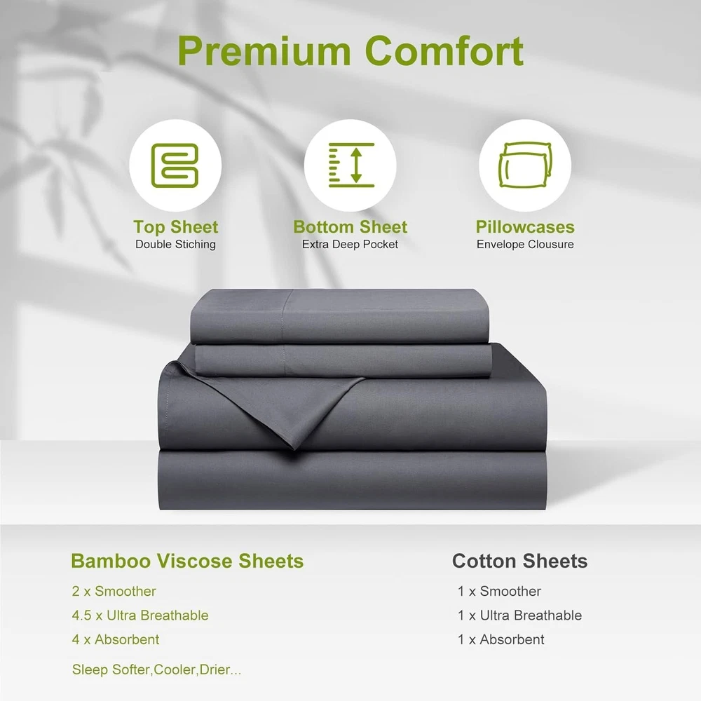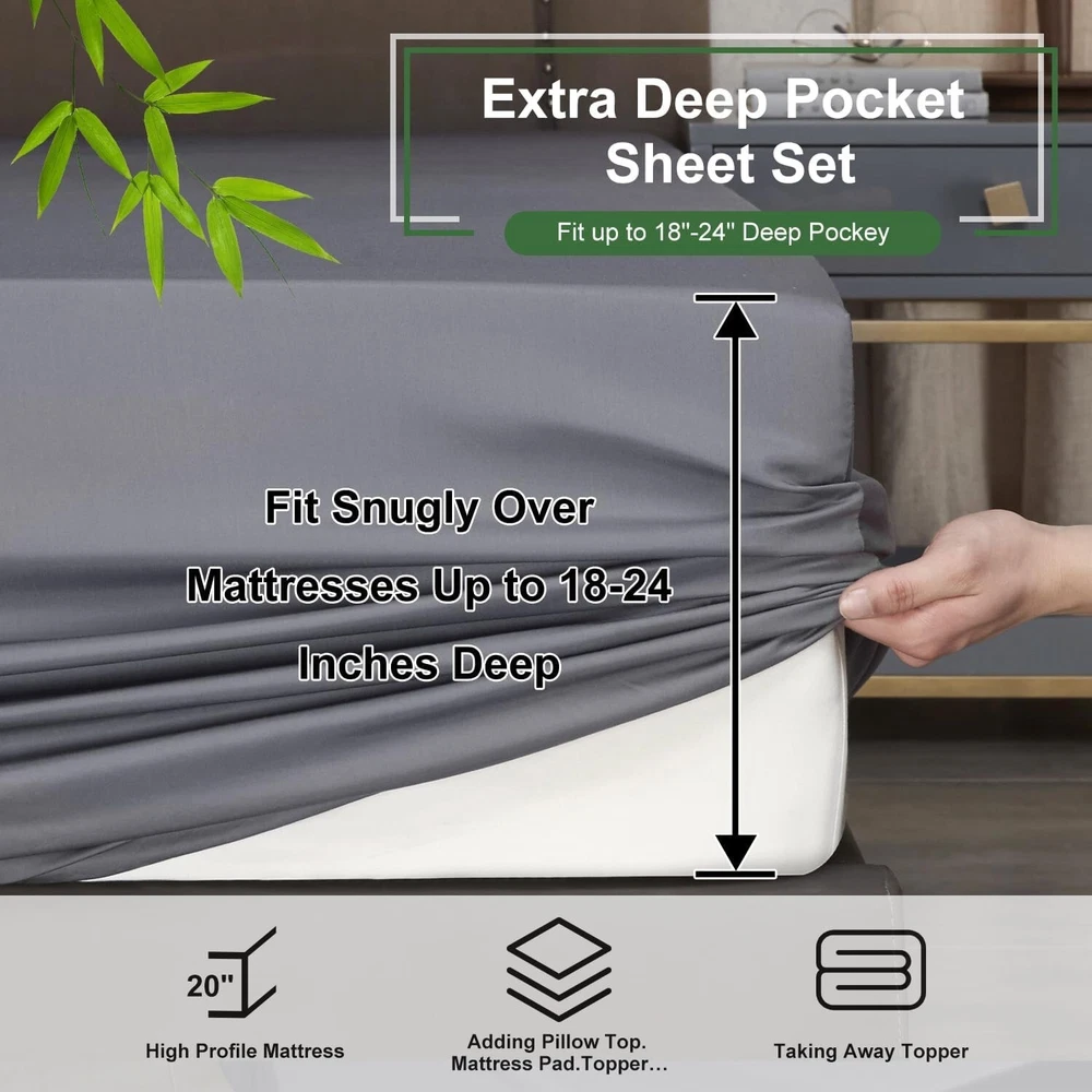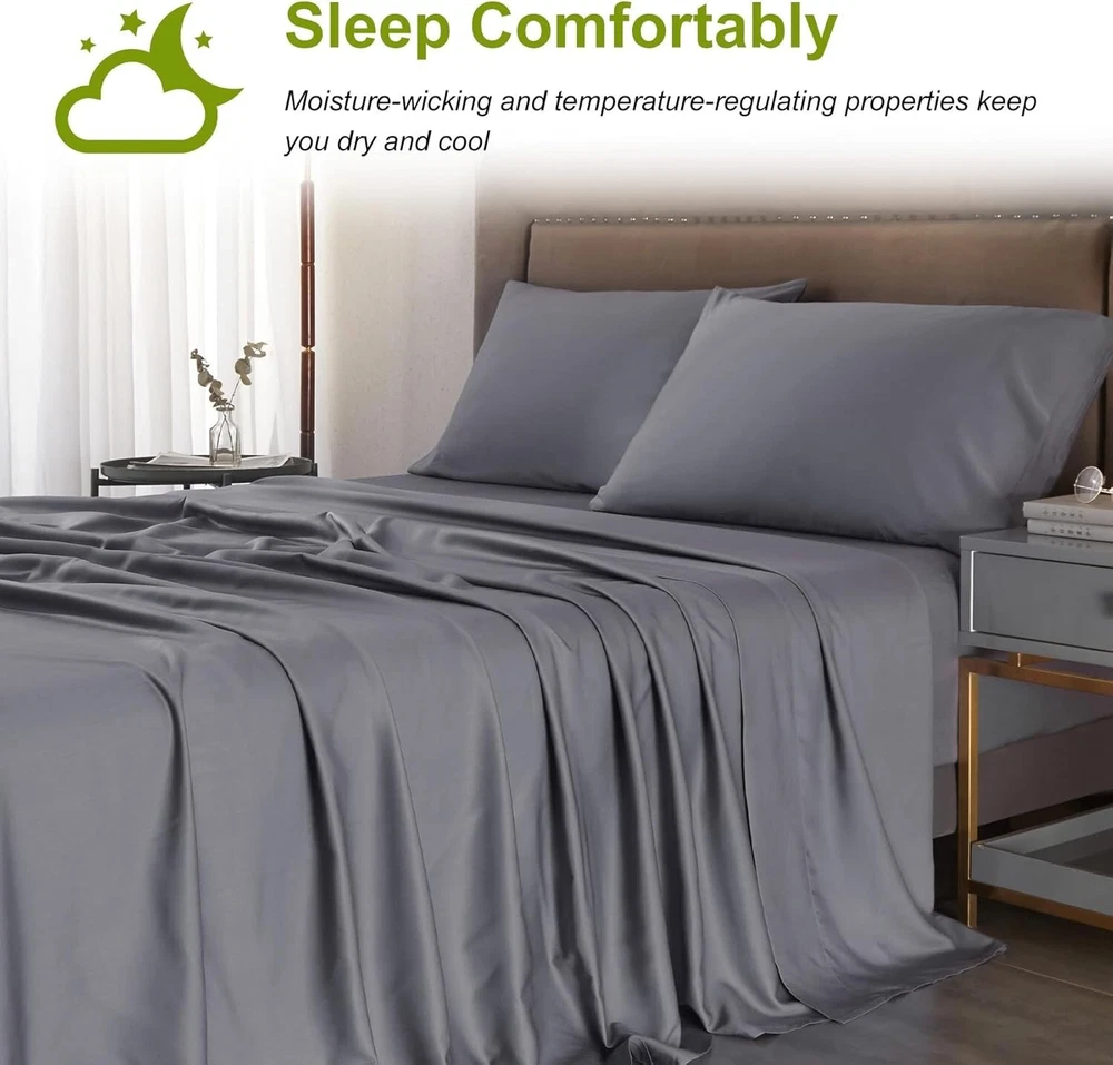 Deep Pocket King Sheets Rayon Bamboo Cooling Soft Breathable Hotel Luxury ‹ › ‹ › ‹ › ‹ › ‹ › ‹ › ‹ › ‹ › ‹ › ‹ › ‹ › Deep Pocket King Sheets - Rayon Bamboo Cooling Soft Breathable Luxury Experience the Luxury of Comfort Indulge in a truly restful night's sleep with our Cooling Bed Sheets Set , designed for those who appreciate the finer things in life. Made from 100% Rayon derived from Bamboo, these sheets boast a luxurious, silky feel that transforms your bed into a sanctuary for relaxation. Key Features: 100% Rayon from Bamboo for irresistible softness. Breathable cooling fabric that adapts to body temperature, ensuring all-season comfort. Extra deep pocket fitted sheets compatible with mattresses up to 24" deep. 4-piece set includes 1 flat sheet (108"x102"), 1 fitted sheet (78"x80"), and 2 pillowcases (20"x40"). Durable and machine washable; shrink and fade resistant. Benefits: Enjoy the smooth, cooling sensation that bamboo rayon provides, keeping you cool during hot nights. Quick-drying and absorbent material keeps you comfortable and prevents overheating. Extra deep pockets ensure a snug fit on all mattresses, including thick and pillow-top styles. Softness improves with every wash, promising increasingly cozy evenings. Hypoallergenic properties make it an ideal choice for sensitive sleepers. Elevate Your Sleep Experience Say goodbye to restless nights and wake up feeling refreshed with our Deep Pocket King Sheets Set. With a luxurious feel akin to the finest silk or cotton, these cooling sheets will redefine your sleeping experience. Each detail is meticulously crafted to offer you comfort and support, making bedtime something to look forward to every night. Transform your bedroom into a luxurious retreat with our sheets that embrace you in softness while adapting to the rhythms of your body. Don't settle for less—choose the epitome of comfort and elegance for your sleeping sanctuary. Shipping Free & Fast Shipping - We offer free shipping to most of the USA with a normal delivery time of 3-7 days. However, due to the current situation, additional delivery time (up to 3 weeks) may be required for some items. Alternative Carriers - We may use alternative carriers (e.g. USPS, FedEx, UPS, etc.) to ensure your package arrives safely and on time. Due to the use of multiple carriers, we are unable to provide a tracking number automatically. Handling Time - Orders are processed and shipped within 1-2 business days of receiving cleared payment. Shipping Restrictions - Shipping to Alaska, Hawaii, Puerto Rico, Guam, and other US territories may incur shipping charges or delivery restrictions. Please contact us before ordering, or your order can be refunded/cancelled. State Restrictions - There may be restrictions based on your state of purchase. For example, certain items may not be shipped to California due to state regulations. Contact for Tracking Updates - If you require tracking updates or have any concerns about the delivery of your order, please feel free to contact us, and we will be happy to assist you. Return 30-Day Hassle-Free Returns - We want you to be completely satisfied with your purchase. If you are not, you can return the item within 30 days of receiving it for a full refund or exchange. Easy Return Process - To start a return, simply contact us and we will provide you with a prepaid return shipping label and detailed instructions. Restocking Fee - There are no restocking fees for returns. However, the buyer is responsible for return shipping costs if the return is not due to a seller's error. Refund Processing Time - Refunds will be processed within 5 business days of receiving the returned item in its condition. Payment We accept all major credit cards, PayPal, and Apple Pay for your convenience. Your payment information is secure and encrypted to ensure a safe and seamless transaction. Please complete your payment within 3 days of purchase to avoid any delays in shipping. Feedback Your feedback is extremely important to us. We strive to provide the best products and customer service possible. If you are satisfied with your purchase, please take a moment to leave us a positive review. If you have any concerns or issues with your order, please contact us before leaving negative feedback. We are committed to resolving any problems and ensuring your satisfaction. Contact Us If you have any questions or concerns, please feel free to out to our customer support team. You can contact us through the eBay messaging system. We are available Monday to Friday, 9:00 am to 5:00 pm EST, and we will do our best to respond to your inquiry within 24 hours. Buy it now and enjoy a pleasant shopping experience! Unit Quantity: 1 Material: Bamboo,Rayon Features: Breathable,Cooling,Deep Fitted,Hypoallergenic,Machine Washable Theme: Luxury Care Instructions: Machine Wash,Tumble Dry Department: Unisex Baby & Toddler,Kids,Teens,Adults Room: Bedroom Size: King Type: Sheet Set Color: Grey Pattern: Solid Thread Count: 200 or Less Style: Modern Shape: Rectangular GSM (Grams per Square Meter): 301 to 450 Unit Type: Unit