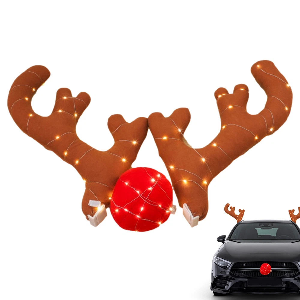 Bullet Points: Full of Festive Cheer: Elevate your holiday spirit with our Reindeer Antlers and Nose, perfect for adding some playful charm to your ride. These decorations are full of Christmas cheer and festive appeal. Reliable Materials: Our Reindeer Antlers for Cars are uniquely designed with excellent quality Oxford cloth that provides unmatched softness and durability. The comfortable-to-the-touch material is easy to clean and can withstand any weather conditions, ensuring a long-lasting festive experience. Easy and Trouble-Free: Installing our Reindeer Antlers for Cars is a breeze thanks to the thick PVC clips that provide a stable and secure fit. You can enjoy a festive holiday atmosphere on your car without any concern about them falling off during your drive. Enhanced Christmas Atmosphere: Designed for easy installation on multiple models, they'll shine the road and attract attention to your ride. Make your car stand out this holiday season with this eye-catching car accessory. Great Gift: Elevate the Christmas spirit with these unique Reindeer Antlers for Cars, a great way to impress your creative friends and make every drive festive and fun. Add some holiday cheer to your car with our Car Deer Antlers! With fun Christmas elements, these antlers are sure to make your car stand out. They're easy to install and won't fall off easily. Plus, they're compatible with various car models and are easy to clean. Add some festive cheer to your car with our Car Reindeer Antlers & Nose! The Christmas elements are perfect for the holiday season and they easily attach to various models. Plus, they're easy to clean and won't fall off easily. Specification: Packaging size: about 48x35x6cm (the packaging may vary depending on the batch) Packing List: 1Set of Car Reindeer Antlers & Nose Note: Due to different lighting and screen settings, the item color may be slightly different from the picture. Due to different manual measurements, please allow a 1-2cm difference in size.