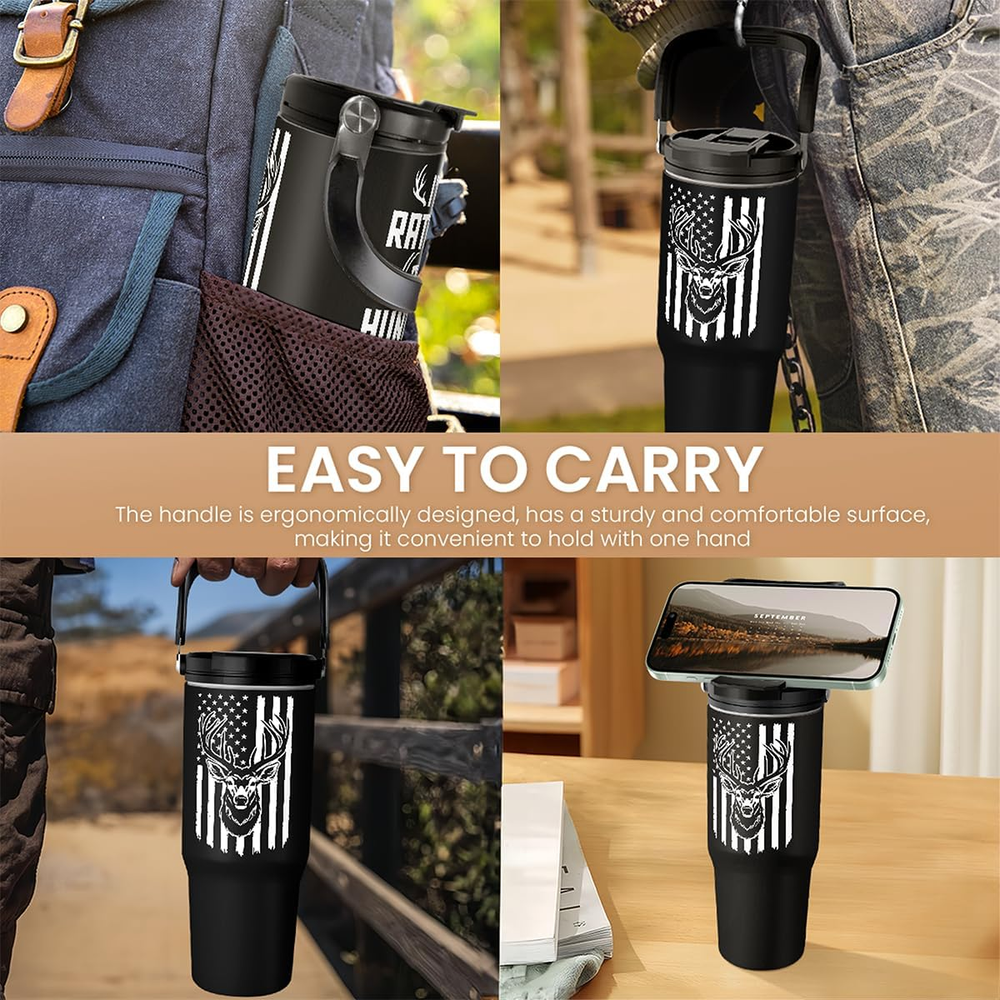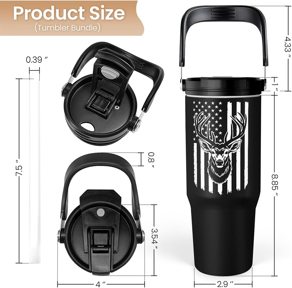 Please be aware that the final product might look slightly different compared to the images shown due to different computer monitors or mobile color display Representing your style: our 30oz tumbler seamlessly blends a stylish exterior with unparalleled functionality; our product is more than just a tumbler, it's a reflection of your dynamic approach to life Keeping drinks refreshing: the vacuum insulation keeps your beverages at their optimal temperature for hours; whether you want your coffee hot or tea chilled, your drink can stay just the way you like it Comfortability: our tumbler features a grip handle that makes it effortless to carry during your morning commute or intense home workouts; its ergonomic design not only provides a secure hold but also enhances your drinking experience Innovative design: the flip straw is engineered for smooth sipping as it allows you to stay refreshed without missing a beat; the bottle is made with stainless steel that comes in a sleek silhouette and vibrant colors to complement your lifestyle effortlessly Product Description