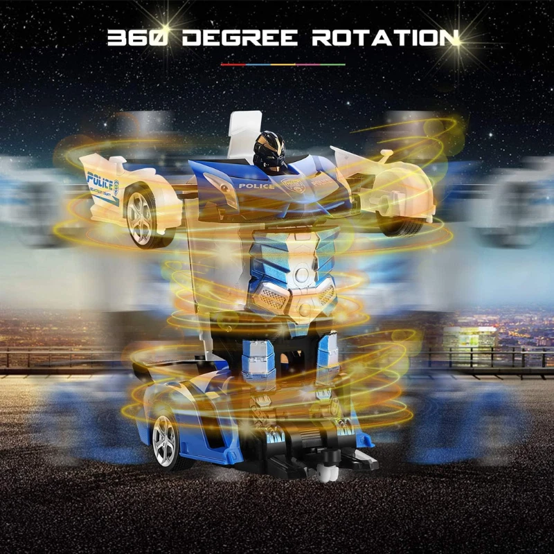 Deformation Police Transform Remote Control Car - High-Speed & Rechargeable Exciting One-Key Transformation: Experience the thrill of high-speed chases and dynamic transformations with the DEFORMATION Police Transform Remote Control Car. With the press of a button, this advanced RC car transforms seamlessly from a sleek police vehicle into a powerful robot, offering endless fun and excitement for kids and adults alike. High-Speed Performance: Designed for speed and agility, the Police Transform RC Car delivers impressive high-speed performance on any surface. The robust motor ensures fast acceleration and smooth handling, making it perfect for thrilling races and intricate maneuvers. Realistic Police Car Design: Featuring a realistic police car design, complete with authentic decals and flashing lights, this remote control car brings the excitement of law enforcement to life. The attention to detail enhances the play experience, making it feel like a real police pursuit. Easy-to-Use Remote Control: The intuitive remote control is easy to operate, allowing users to drive, transform, and maneuver the car with precision. The ergonomic design fits comfortably in your hand, ensuring hours of effortless play. The one-key transformation button simplifies the process, making it accessible for younger children. Durable and Sturdy Construction: Crafted from high-quality, durable materials, the GAINER Police Transform RC Car is built to withstand rough play and collisions. The sturdy construction ensures long-lasting performance, so you can enjoy countless adventures without worrying about wear and tear. Ideal Gift for Kids: Perfect for birthdays, holidays, or special occasions, the DEFORMATION Police Transform Remote Control Car makes an excellent gift for kids who love action-packed toys. It encourages imaginative play and helps develop hand-eye coordination and fine motor skills.