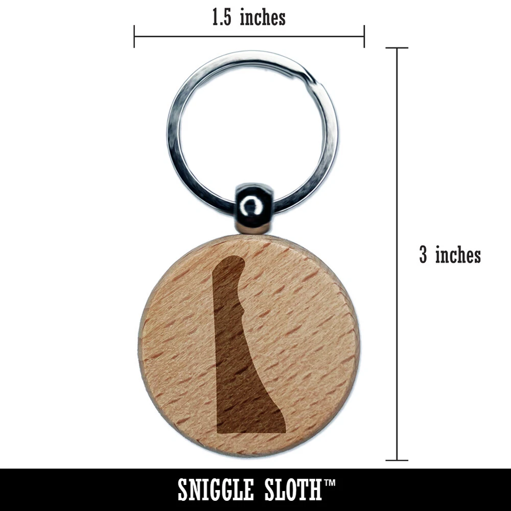 Delaware State Silhouette Engraved Wood Round Keychain Tag Charm